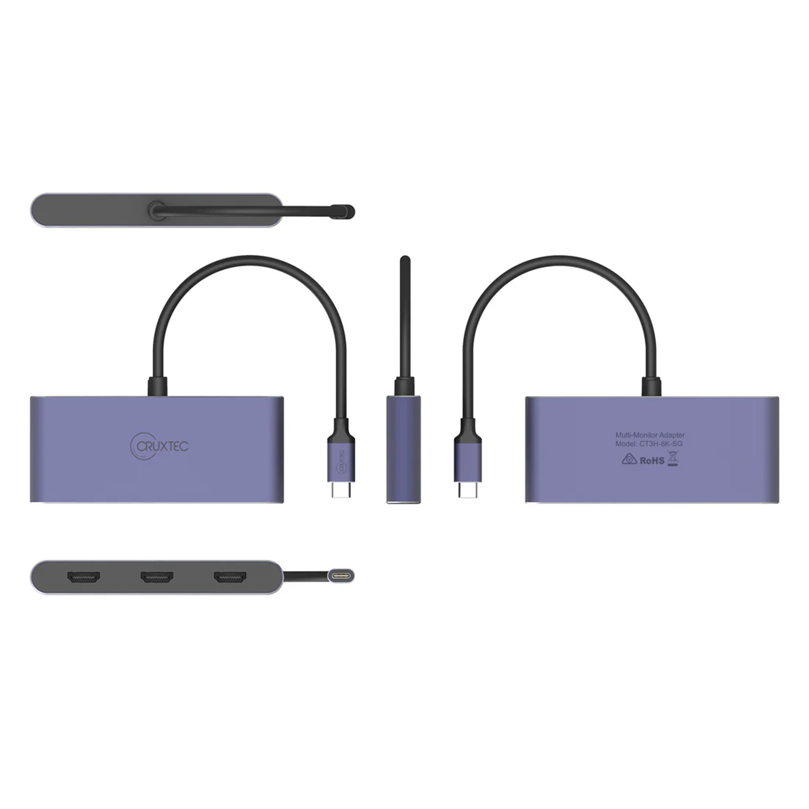Cruxtec USB-C to 3 x HDMI Multi-Monitor 8K Adapter
