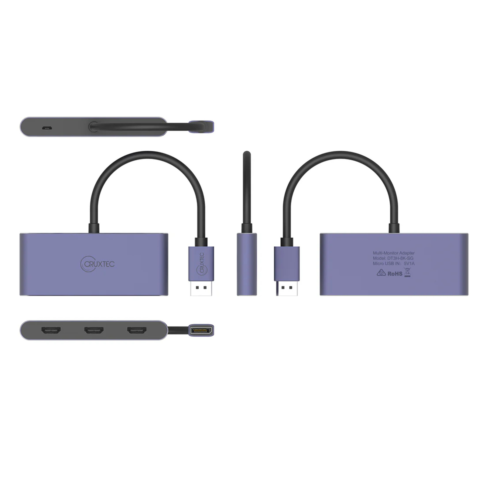 Cruxtec DT3H-8K-SG DP 1.4 to 3x HDMI 2.0 Adaptor