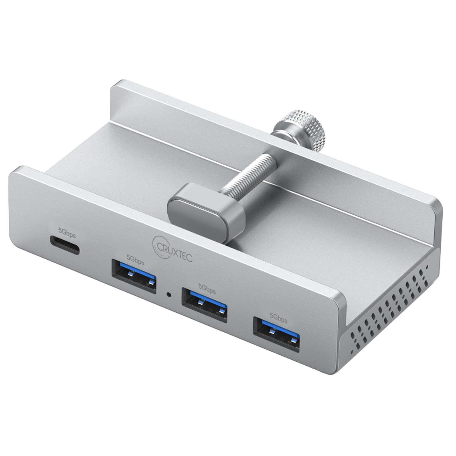 Cruxtec 4 Port Clamp-Mounted USB 3.0 Hub with Type-C Power Port Aluminum Alloy - Output with 3 x USB-A & 1 x USB-C - Clamp Depth:5-30mm