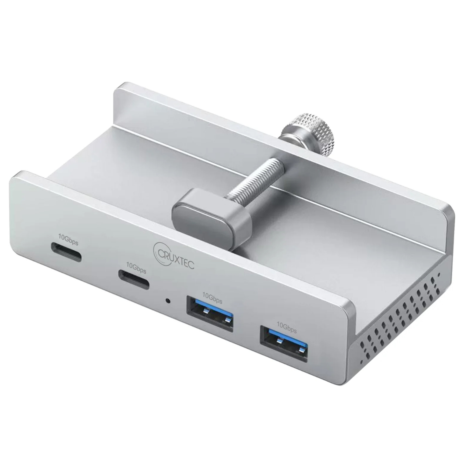 Cruxtec 4 Port Clamp-Mounted USB 3.0 & USB-C Hub with USB-C Power Port Aluminum Alloy - Output with 2 x USB-A & - 2 x USB-C (10Gbps) - Clamp Depth:5-30mm