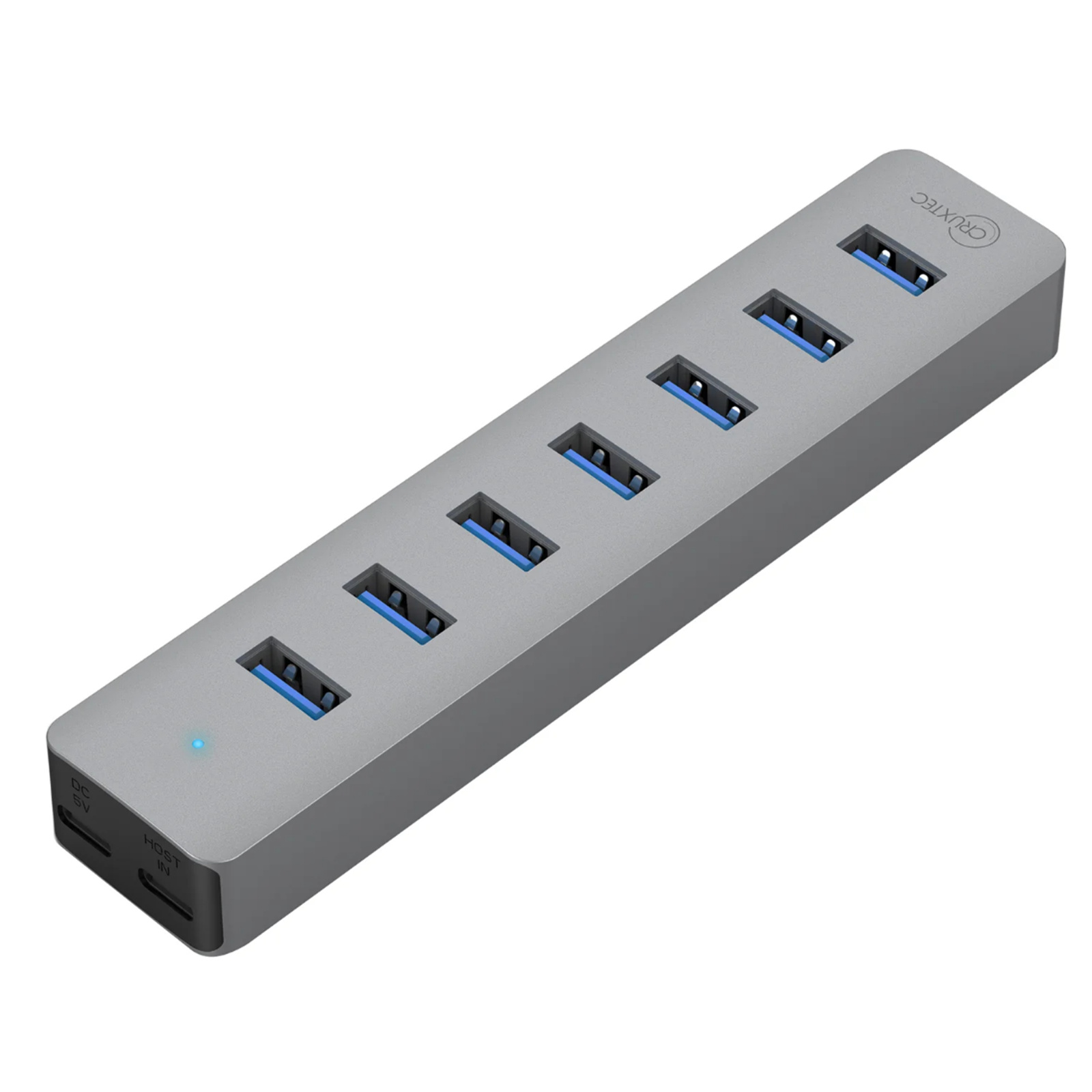 Cruxtec 7 Port USB 3.0 Hub with USB-C Power Port Aluminum Alloy + Plastic - Rate up to 5Gbps - Plug & Play