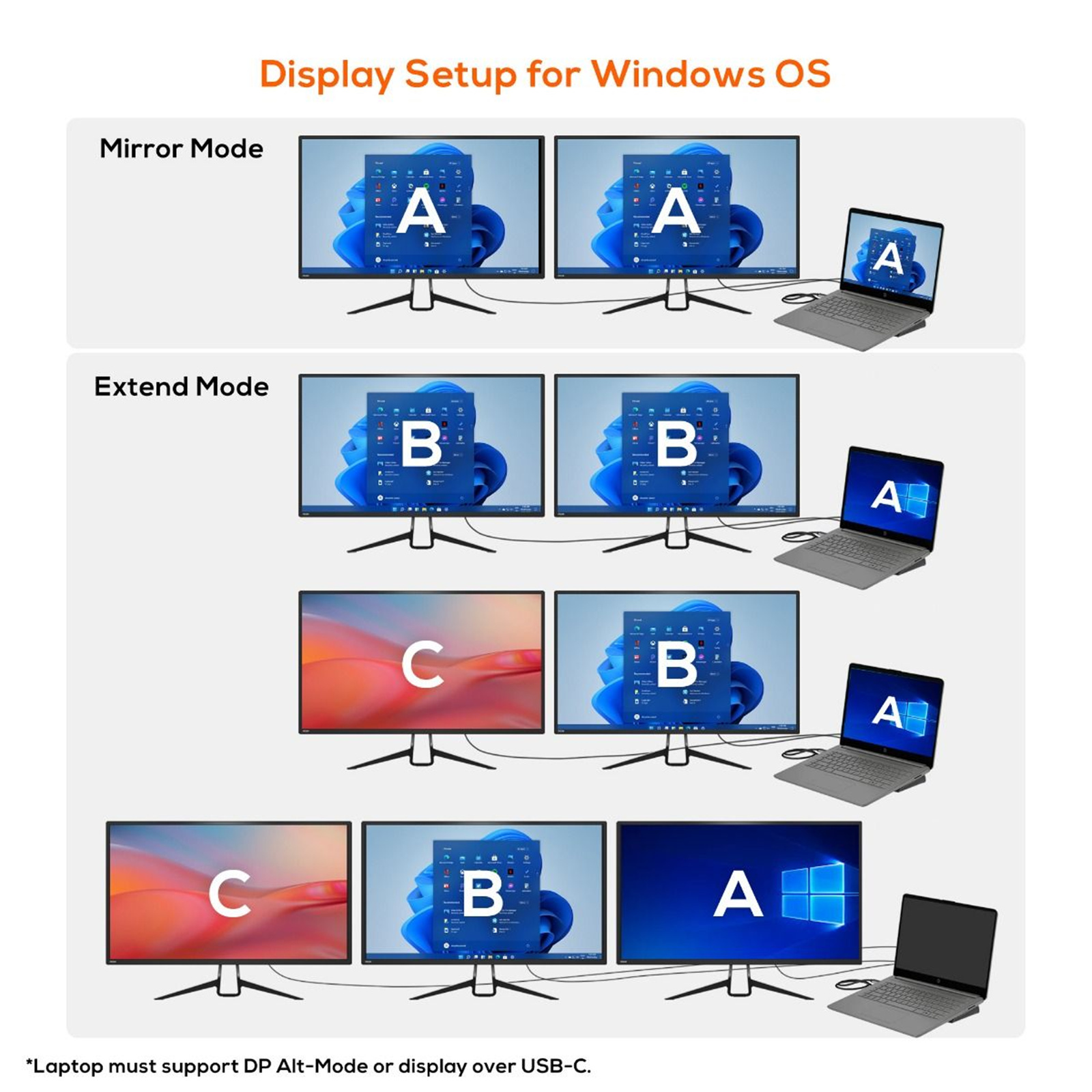 -Windows OS supports MST, Mac OS only supports SST in USB-C Display Alt mode, MacBook (2020) with M1 CPU currently only supports 1 external monitor display.