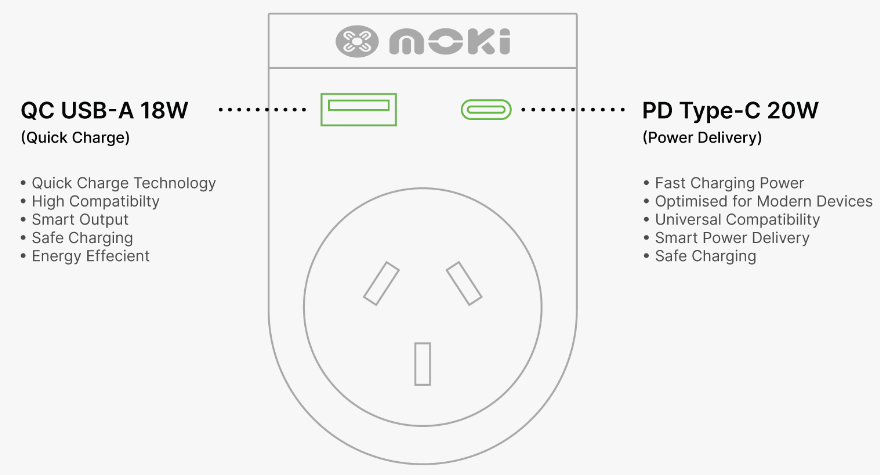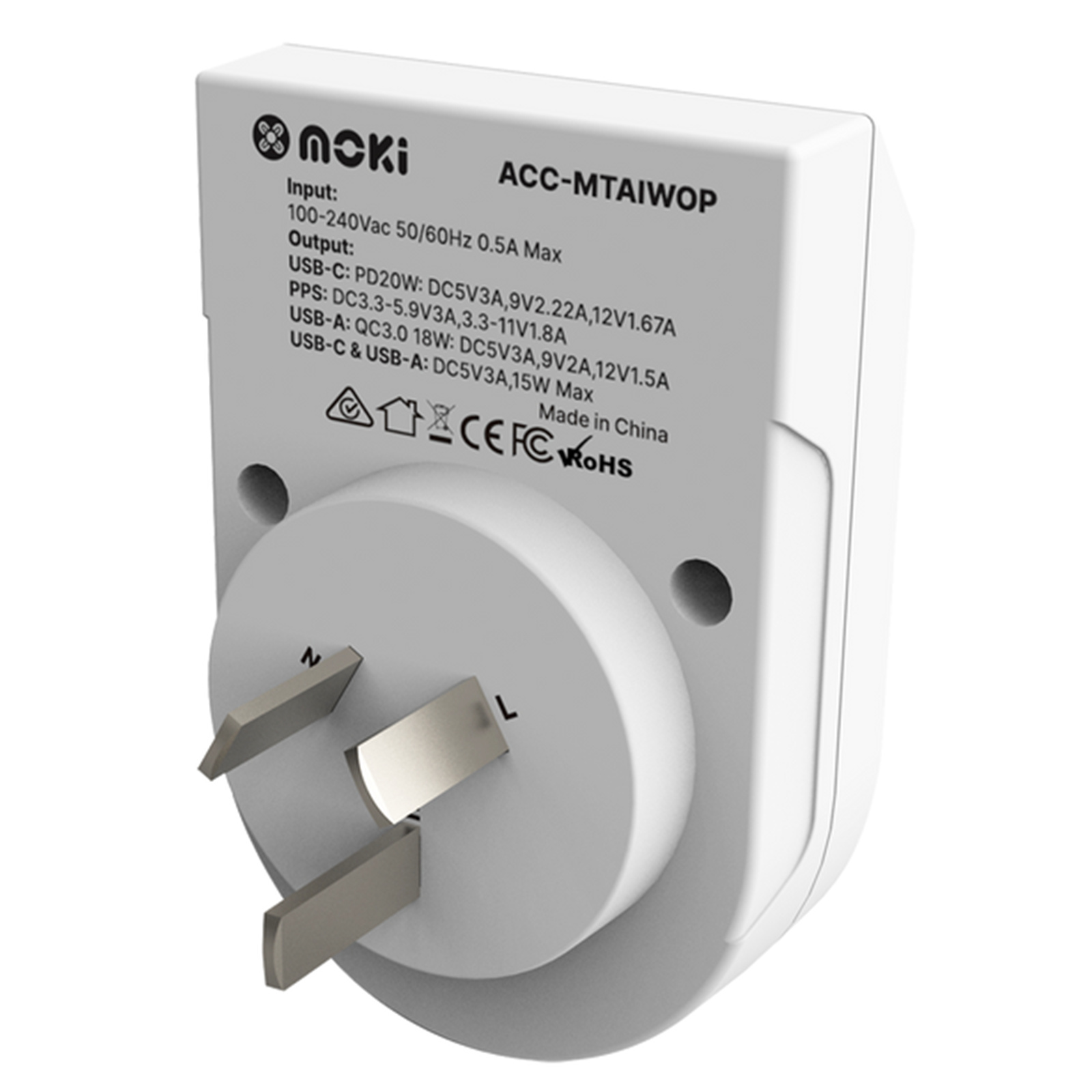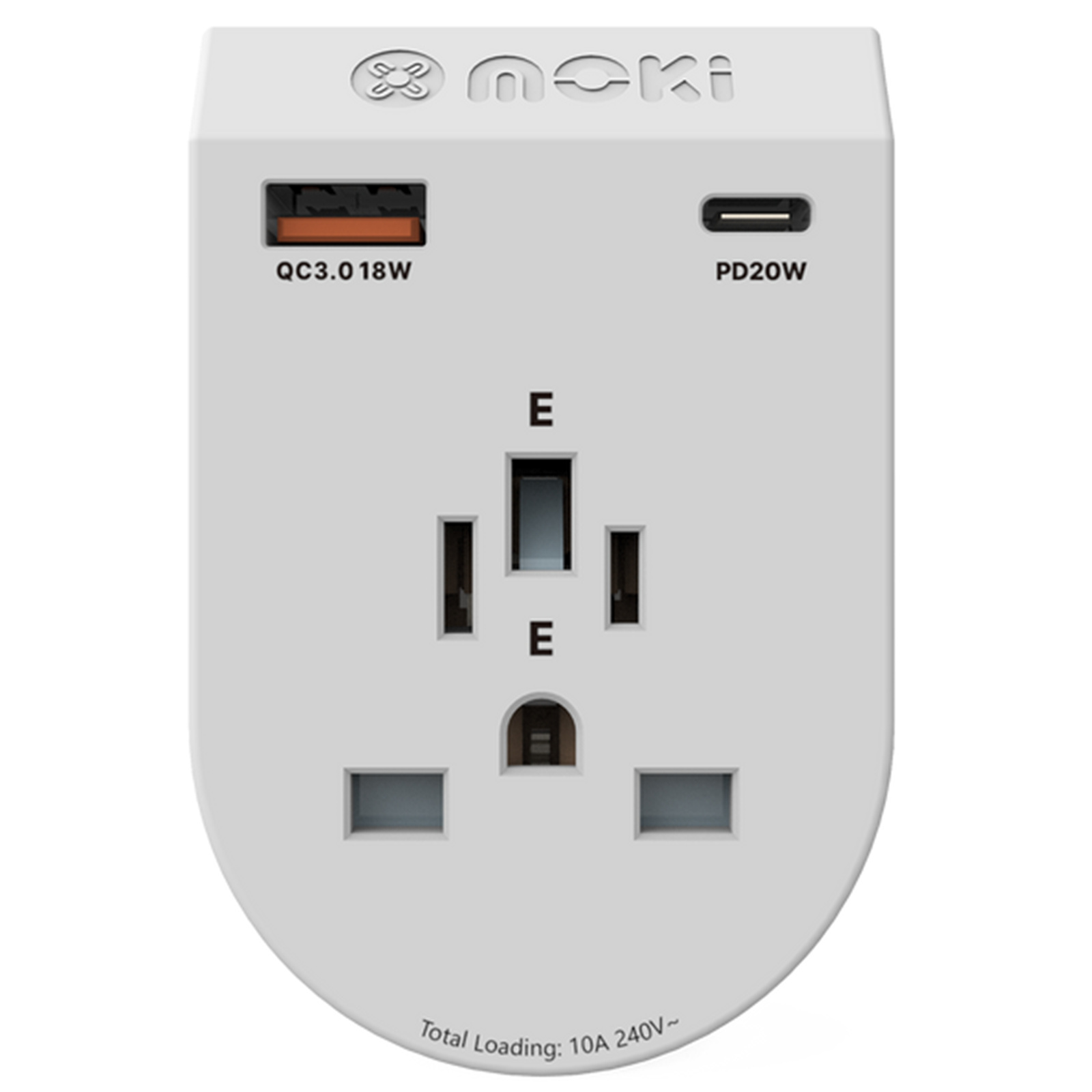 Moki Travel Adaptor Plus Inbound - World (ex. EU) to AU/NZ + PD20W Type-C & QC 3.0 USB-A-ETA to be advised