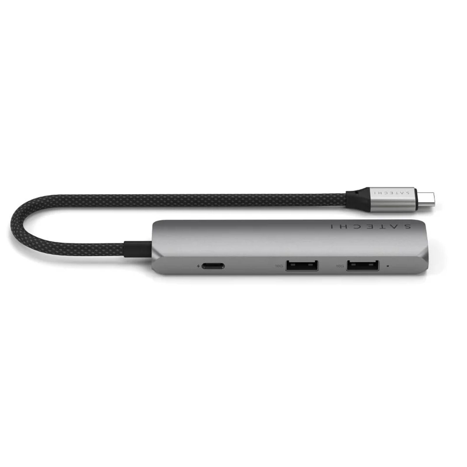 Add a plethora of connections to your setup using a single cable with the Satechi 4-in-1 Slim Multiport Adapter. Satechi's upgraded adapter boasts 4K HDMI (60Hz), 100W USB-C PD charging, and two USB-A 3.2 Gen 2 ports, seamlessly combining four ports into one compact device. Its elevated design boasts a sleek aluminium enclosure with a braided cable and a reinforced neck for optimum durability.