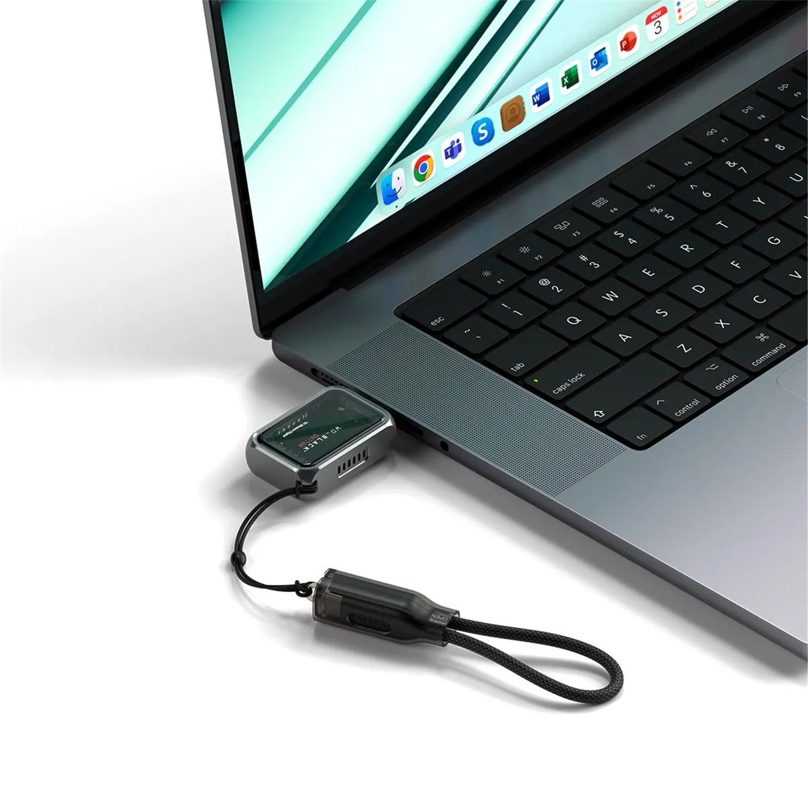 Compact and lightweight, the enclosure includes a handy braided USB-C cable that doubles as a lanyard. With tool-free assembly and a silicone pin to keep your SSD secure, it's ideal for travel and commuting.