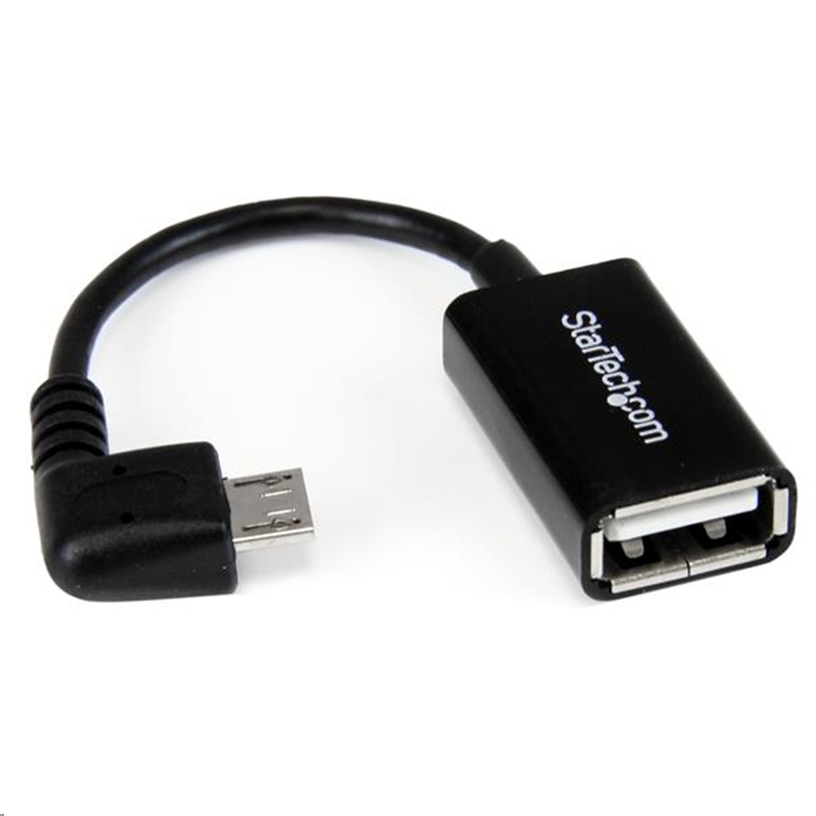 The UUSBOTGRA Right Angle Micro USB On-The-Go Adapter Cable converts your Micro USB OTG capable Tablet or Smartphone into a USB On-The-Go host, and enables you to connect a USB peripheral device such as a flash drive, or a USB mouse or keyboard, etc. - making it perfect for hectic schedules and people on the move who need to work while traveling. The right angle Micro USB connector allows you to position the cable and the USB device in such a way that you can still access your mobile device comfortably with reduced strain on the connection. This OTG adapter cable is designed and constructed for maximum durability, to ensure dependable, long-lasting connections, and is backed by StarTech.com's lifetime warranty.