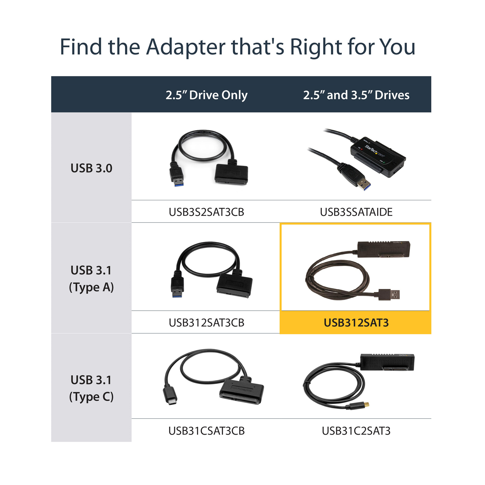 StarTech.com USB312SAT3 USB 3.1 Adapter Cable for 2.5" 3.5" SATA