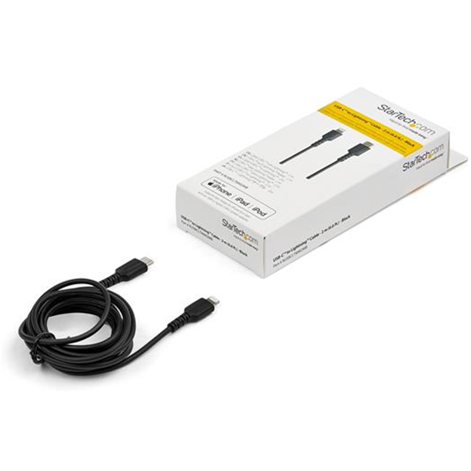 RUSBCLTMM2MB is an Apple MFi certified Lightning cable backed by a StarTech.com 2-year warranty.