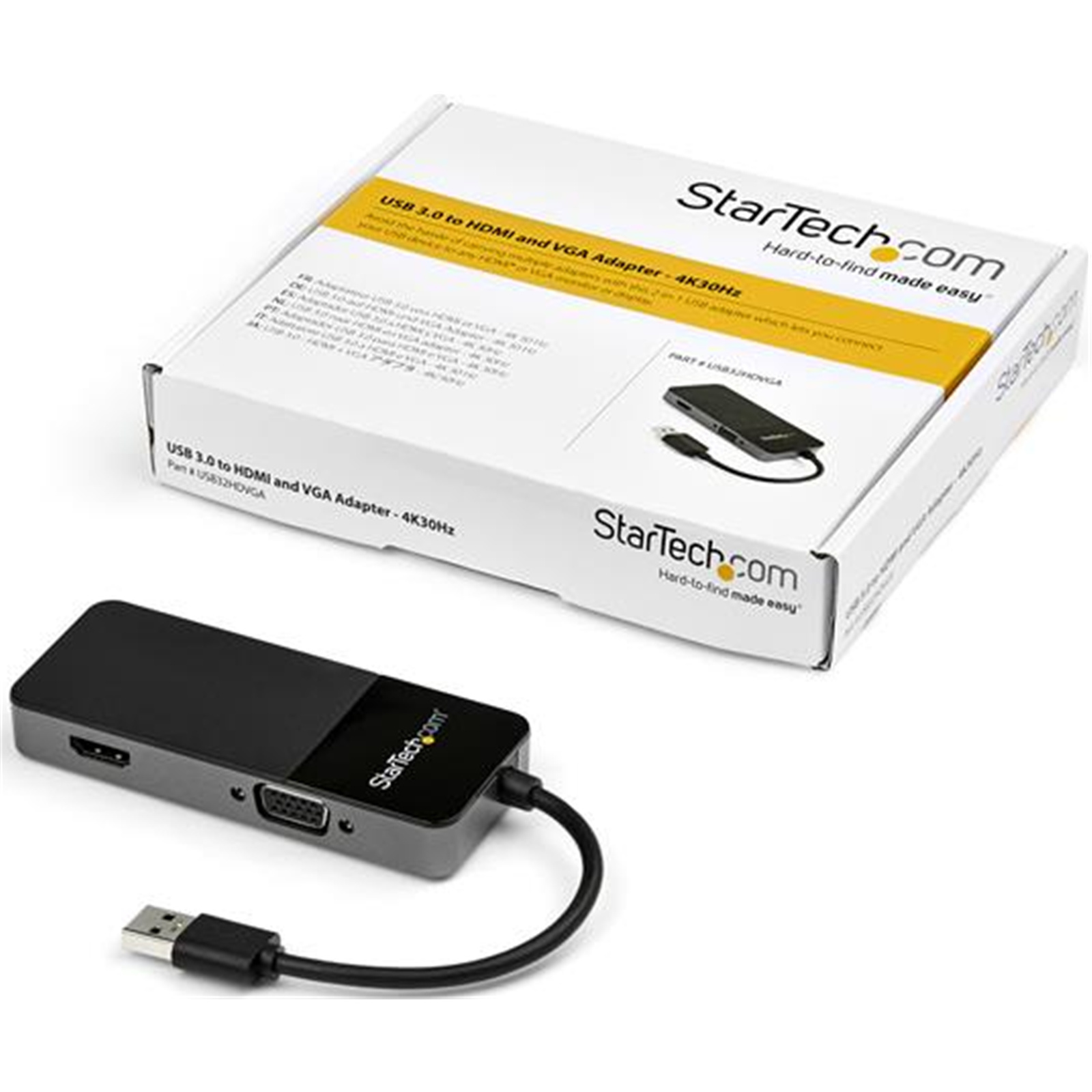 StarTech.com USB32HDVGA USB 3.0 to HDMI and VGA Adapter - 4K/1080p USB Type-A Dual Monitor Multiport Adapter Converter - External Video Graphics Card for Multiple Screens - Multi Display USB Adapter (USB32HDVGA)