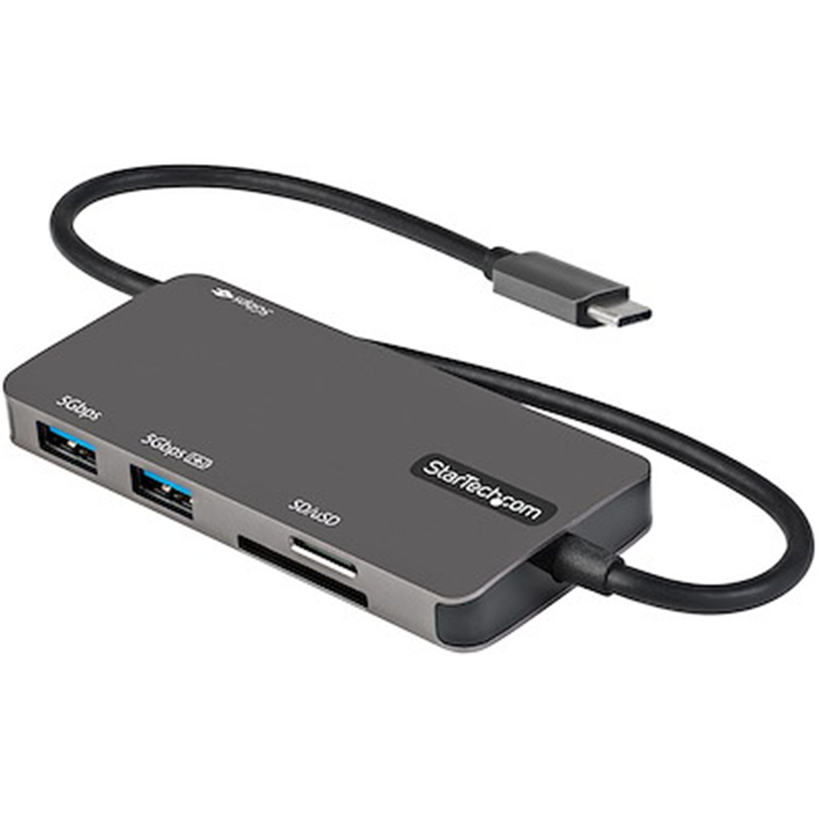 USB-C multiport adapter w/ HDMI 4K 30Hz video output, 2x USB-A (USB 3.1 Gen 1 5Gbps & BC 1.2 charging), 1x USB-C (Data + 100W Power Delivery 3.0), MicroSD & SD Card Reader; works w/ ultra-wide monitors up to 3440x1440 @60Hz