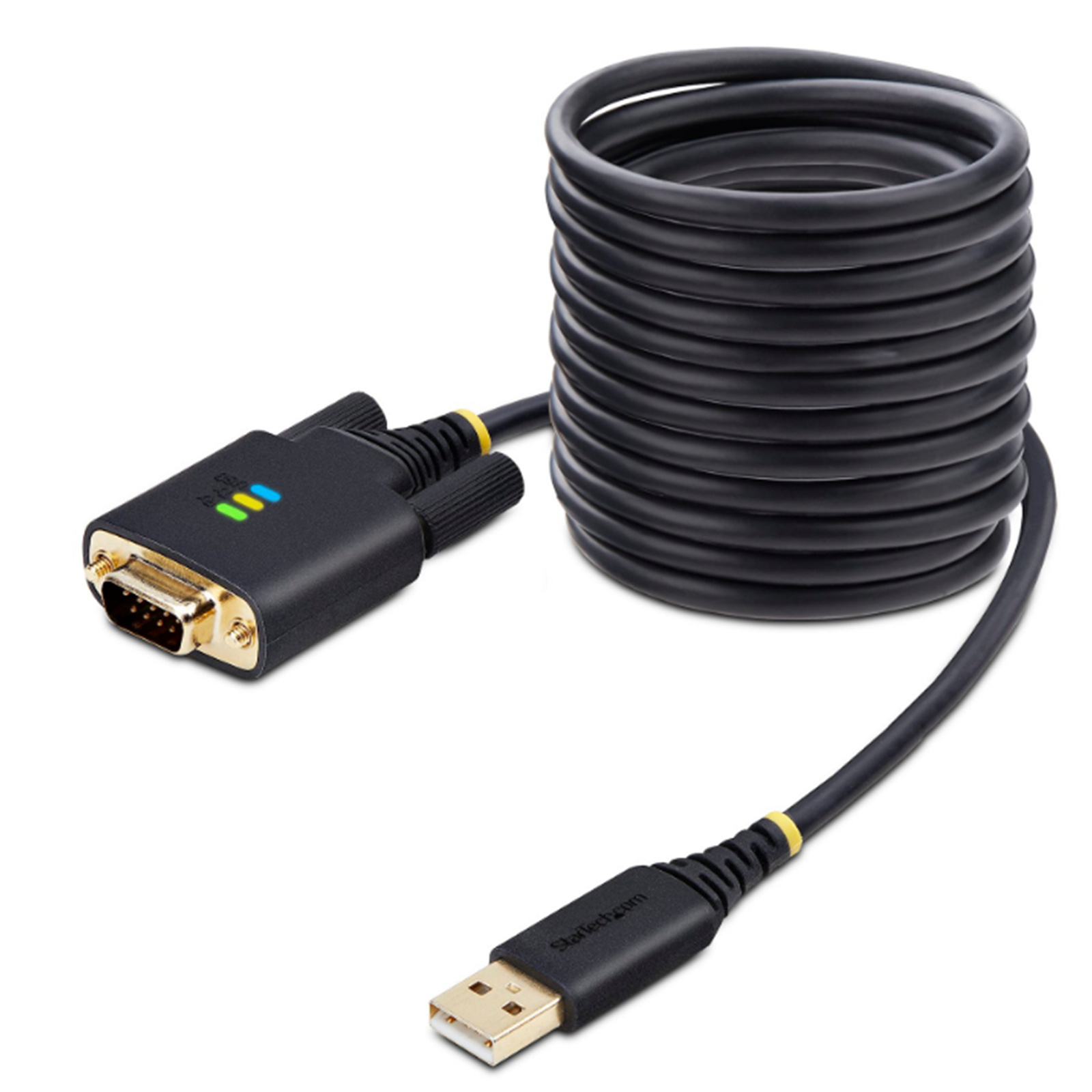 Add RS-232 serial communication support to USB-A enabled Data Terminal Equipment (DTE - e.g., desktop or laptop), using this 10ft (3m) straight through USB to Serial Adapter Cable.