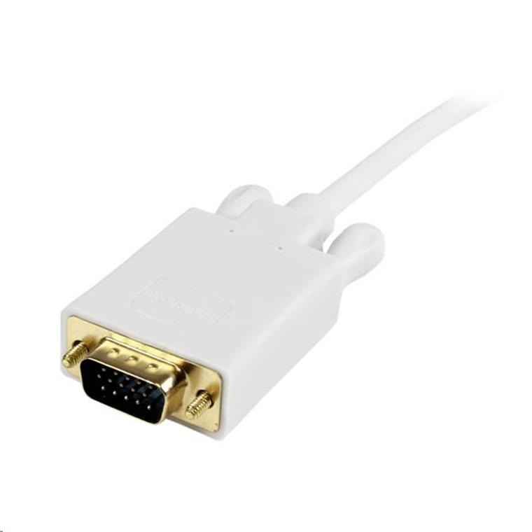 The MDP2VGAMM15W active Mini DisplayPort to VGA converter cable lets you connect your Mini DisplayPort-equipped desktop or laptop directly to a VGA monitor or projector at a longer distance than a standard-length cable would support, while saving the expense of additional adapters. The cable features a stylish white design, that is well-suited for connecting Mac® computers. Plus, because the converter cable supports video resolutions up to 1920x1200 you can convert a DisplayPort video source to VGA without sacrificing video quality. The MDP2VGAMM15W is backed by a 2-year StarTech.com warranty and free lifetime technical support.