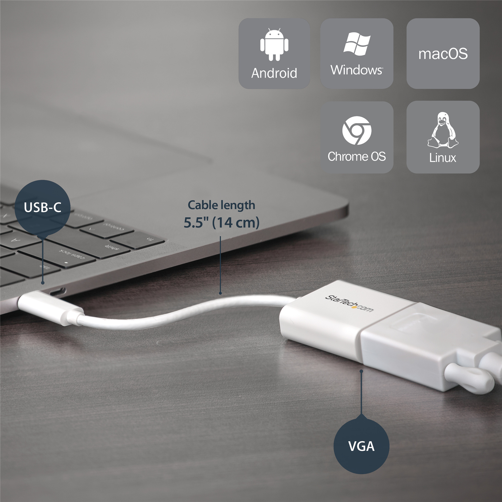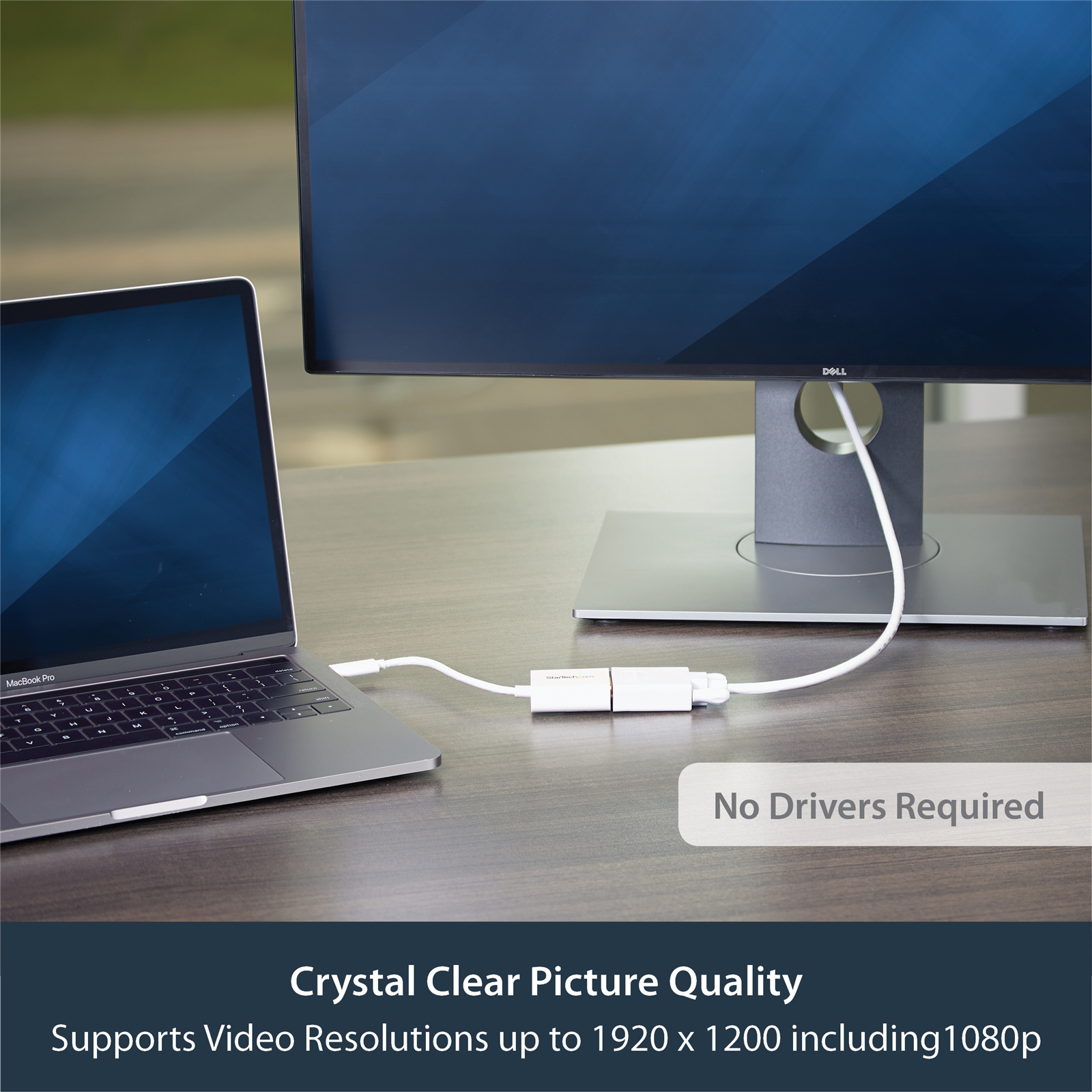 The adapter supports video resolutions up to 1920x1200 or 1080p. You'll be surprised at the picture quality the adapter provides, even when connected to a legacy VGA monitor, projector or television. The adapter harnesses the video capabilities that are built into your USB Type-C connection, to deliver every detail in stunning high-definition. The CDP2VGAW features a white housing that looks great with your MacBook and is backed by a 2-year StarTech.com warranty and free lifetime technical support.