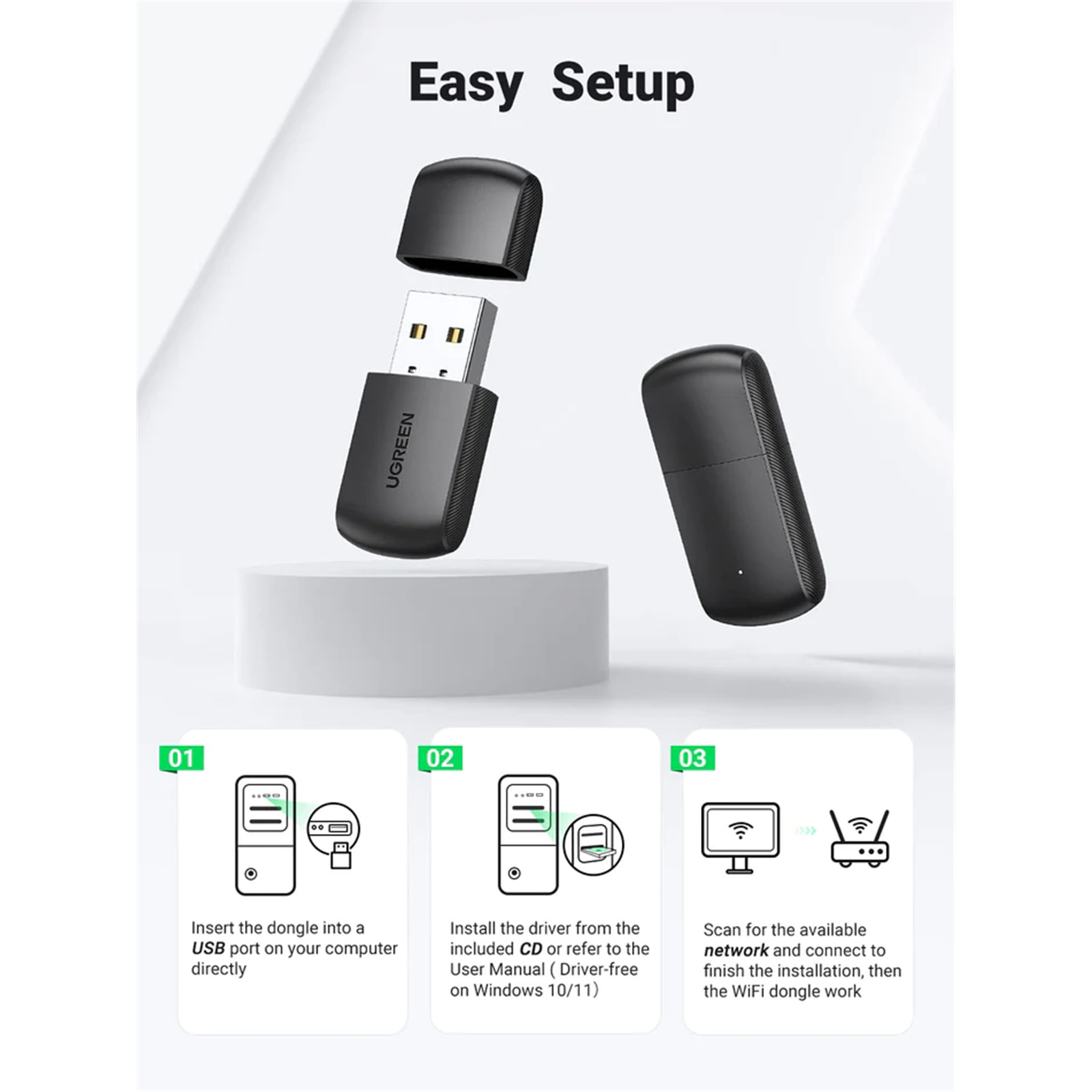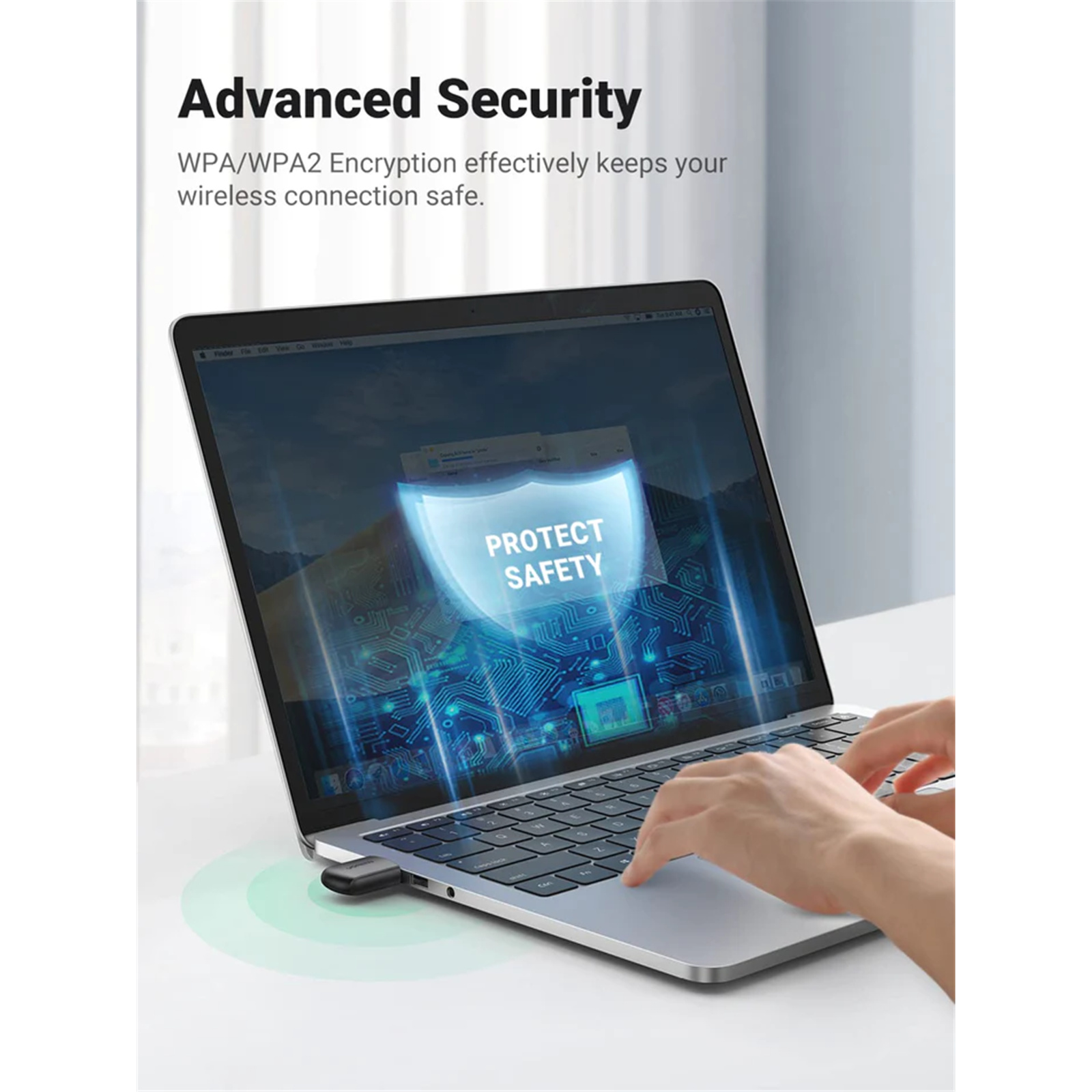UGREEN PC WiFi Adapter is equipped with a dust protection cap, which can effectively avoid the oxidation or damage of the connector of the adapter when it's not in use. Mini size allows you plug and leave the usb wifi dongle in its place or carry the it everywhere.