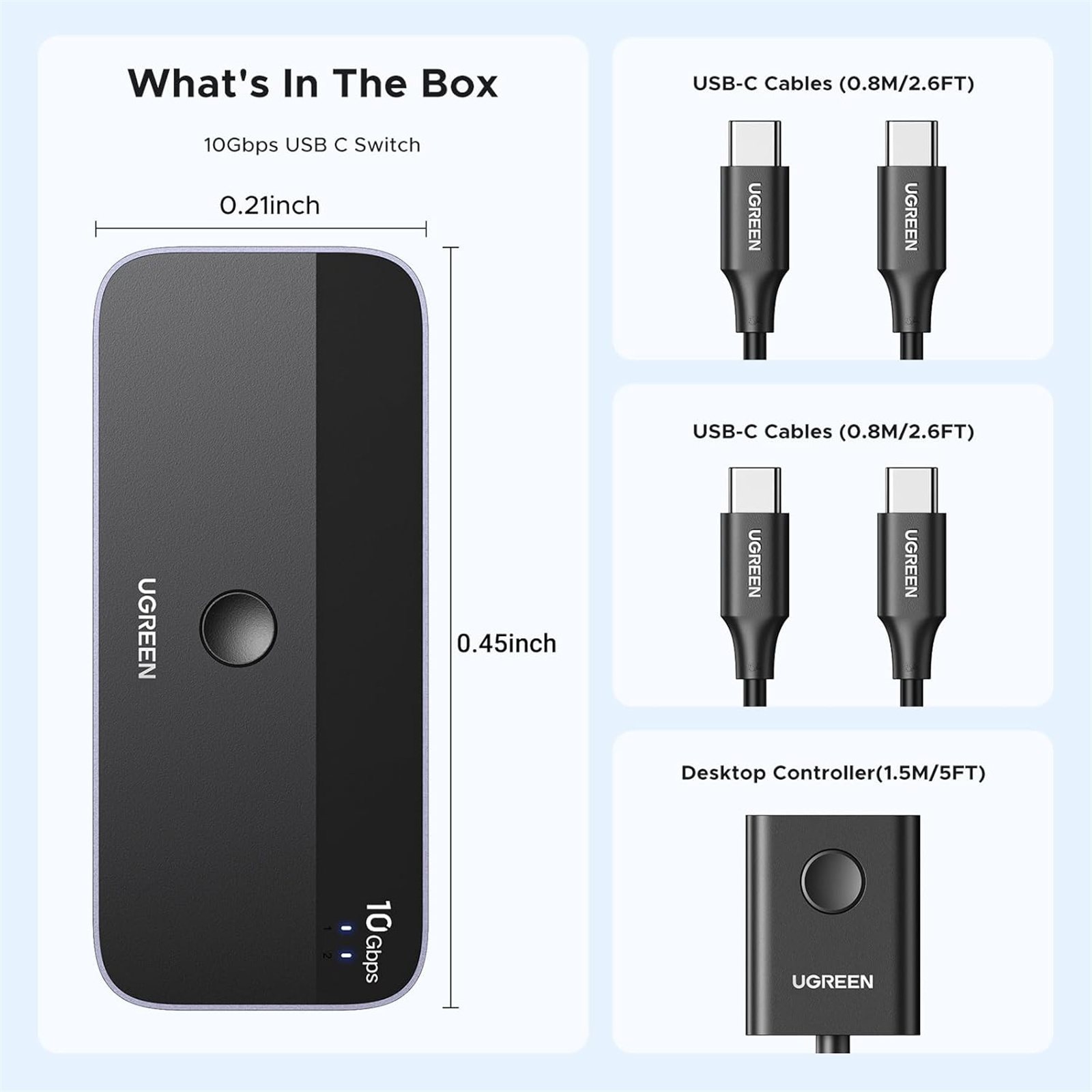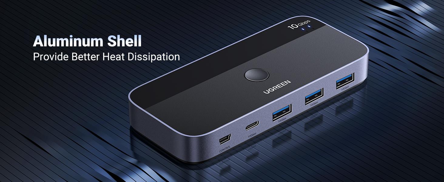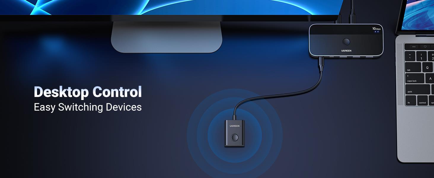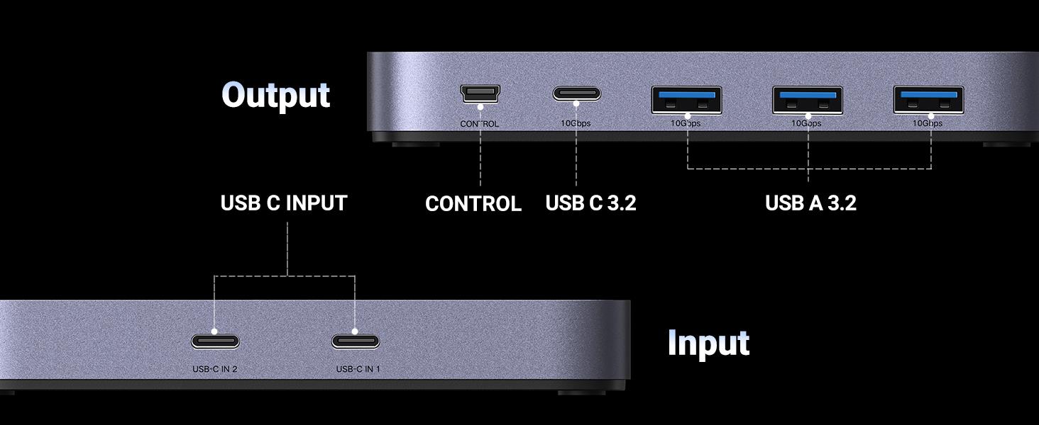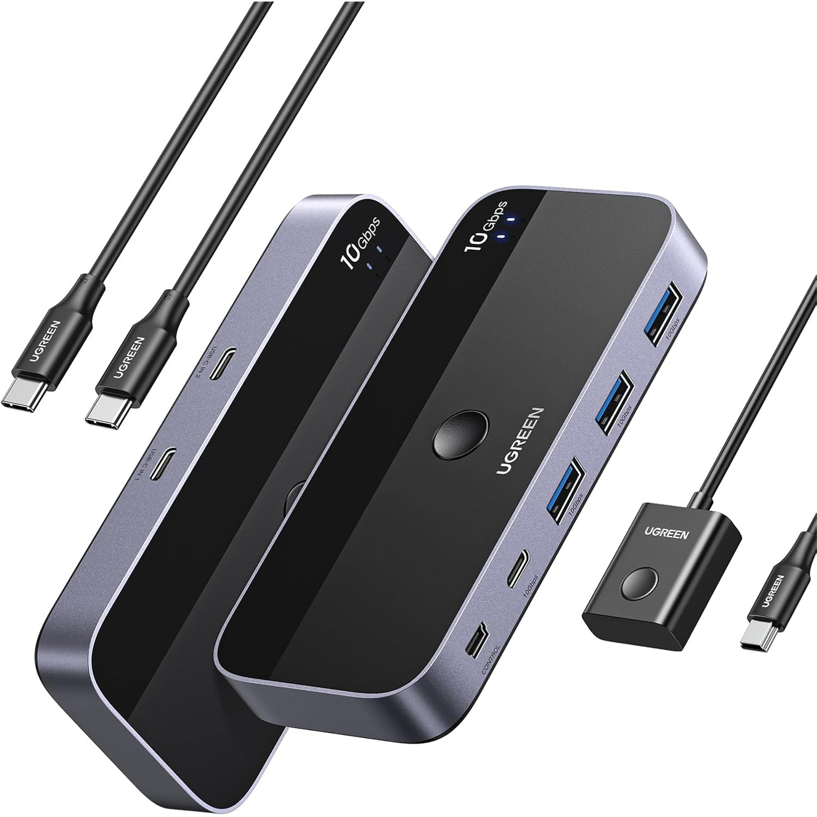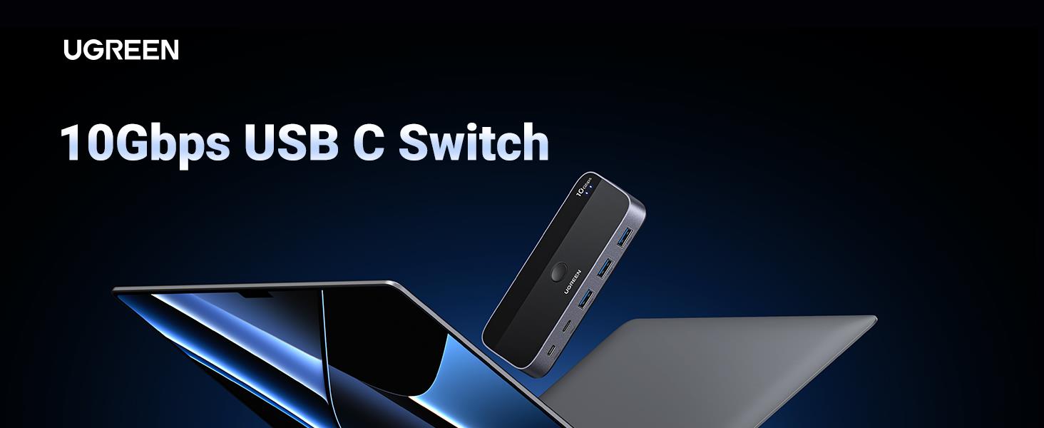UGREEN CM691-25164 B0CH7T76RX 10Gbps USB C Switch 2 Computers Sharing USB C & A Devices, 4 Port USB C 3.2 Switcher for Mac, 2 USB C Laptop Sharing Keyboard, Mouse, Webcam, USB-micwith 2 USB C Data Cables and Remote
