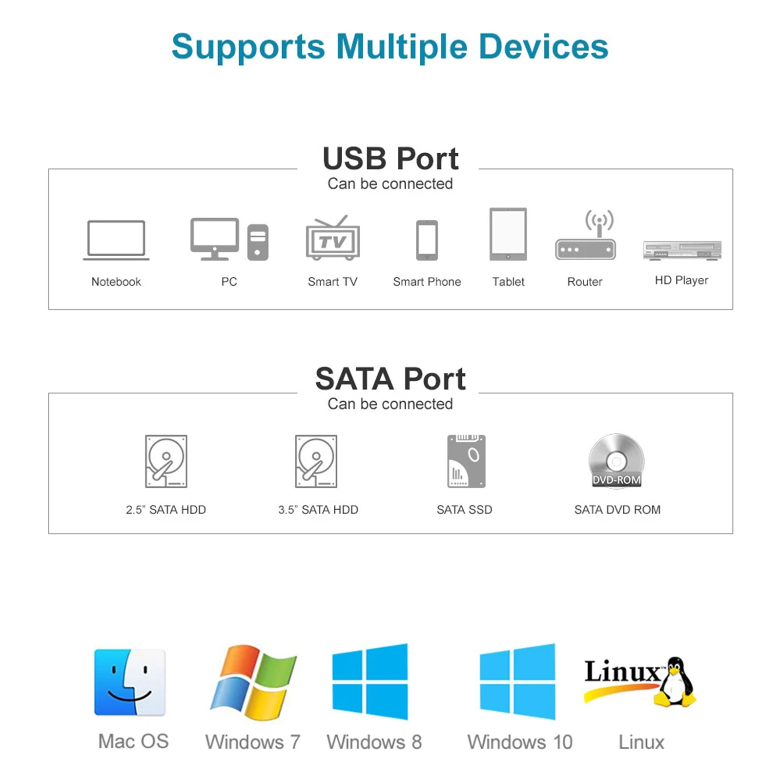 Supports all SATA HDDs