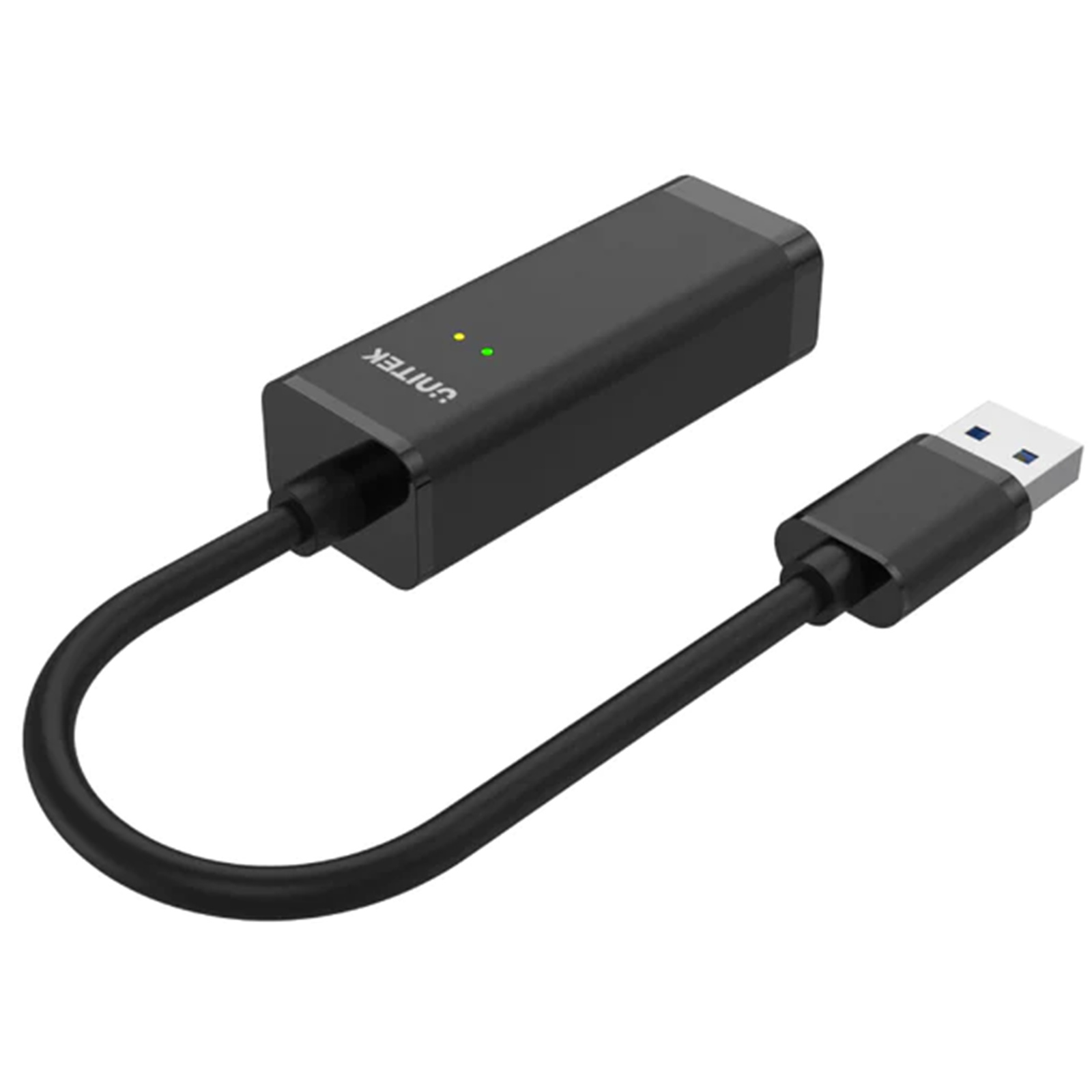 UNITEK USB3.0 Gigabit Ethernet Converter. Supports IPv4/v6, COE, Wake-on-LAN. Full and half duplex. Automatic flip and flow control. Colour Black