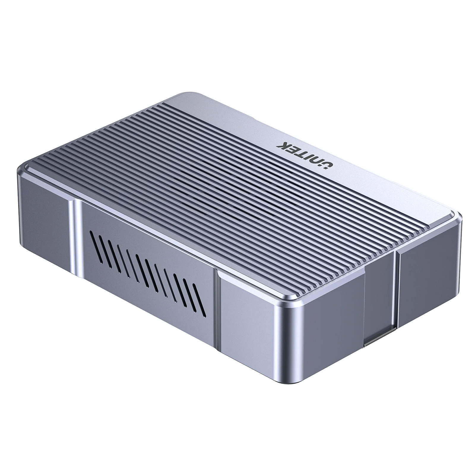 UNITEK SolidForce 20Gbps Dual Bay RAID M.2 SSD Enclosure supports 2 SSD slots, with capacities of up to 8TB per drive or 16TB in RAID 0. Ideal for storage expansion and fast transfers.