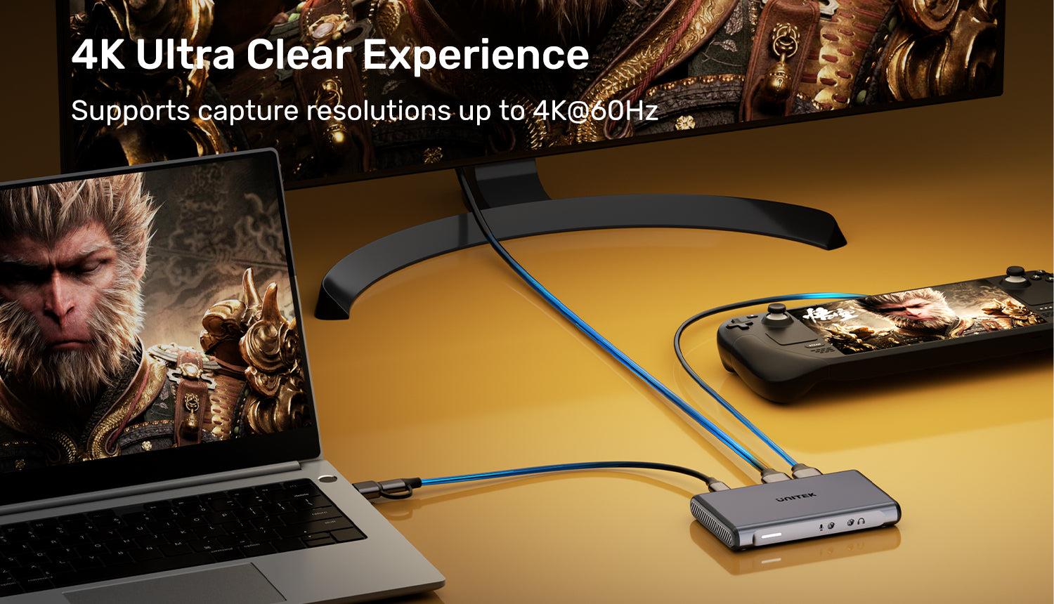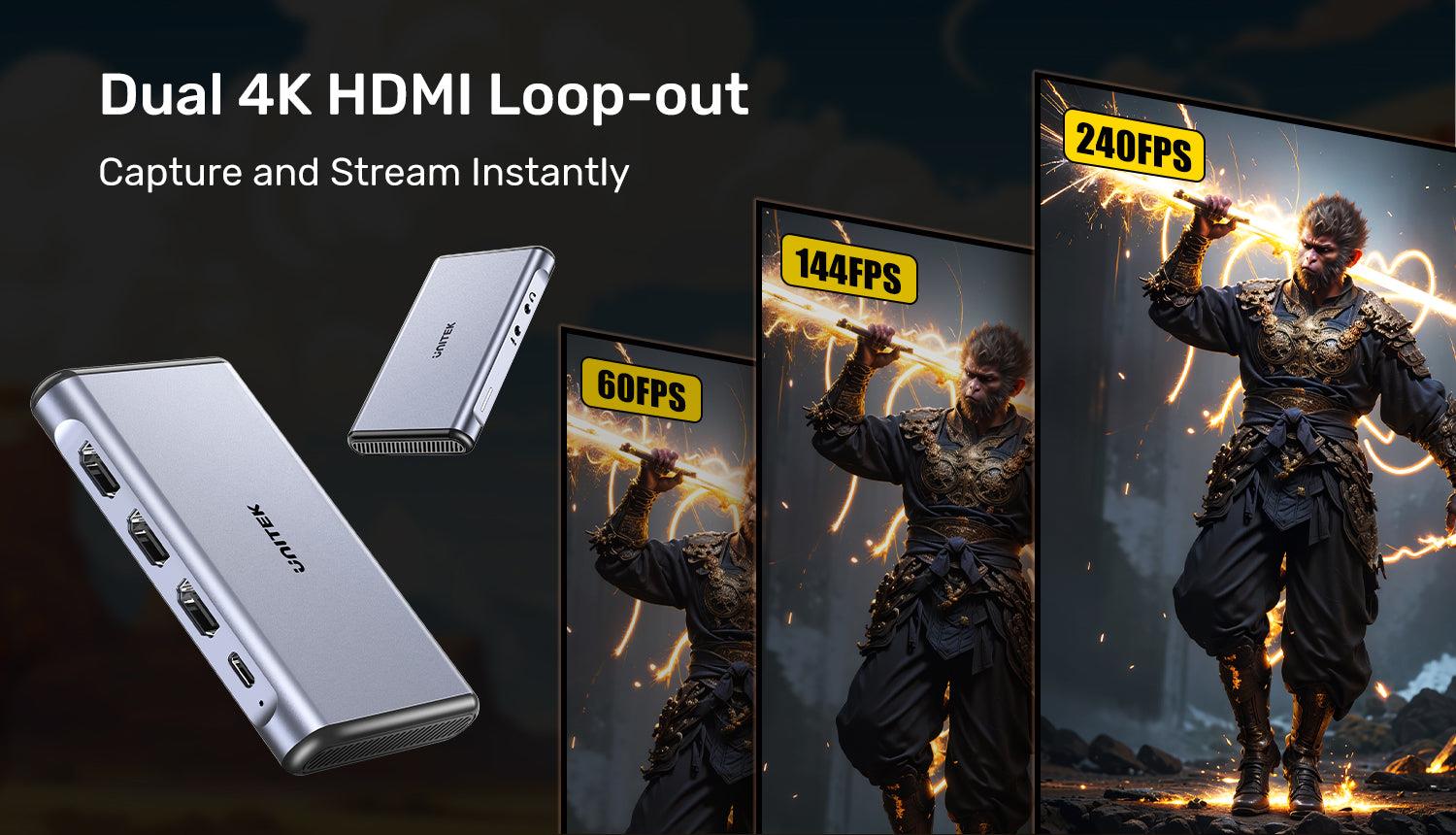 UNITEK 4K HDMI Video Capture Card features industry-leading Dual 4K HDMI Loop-out function.
