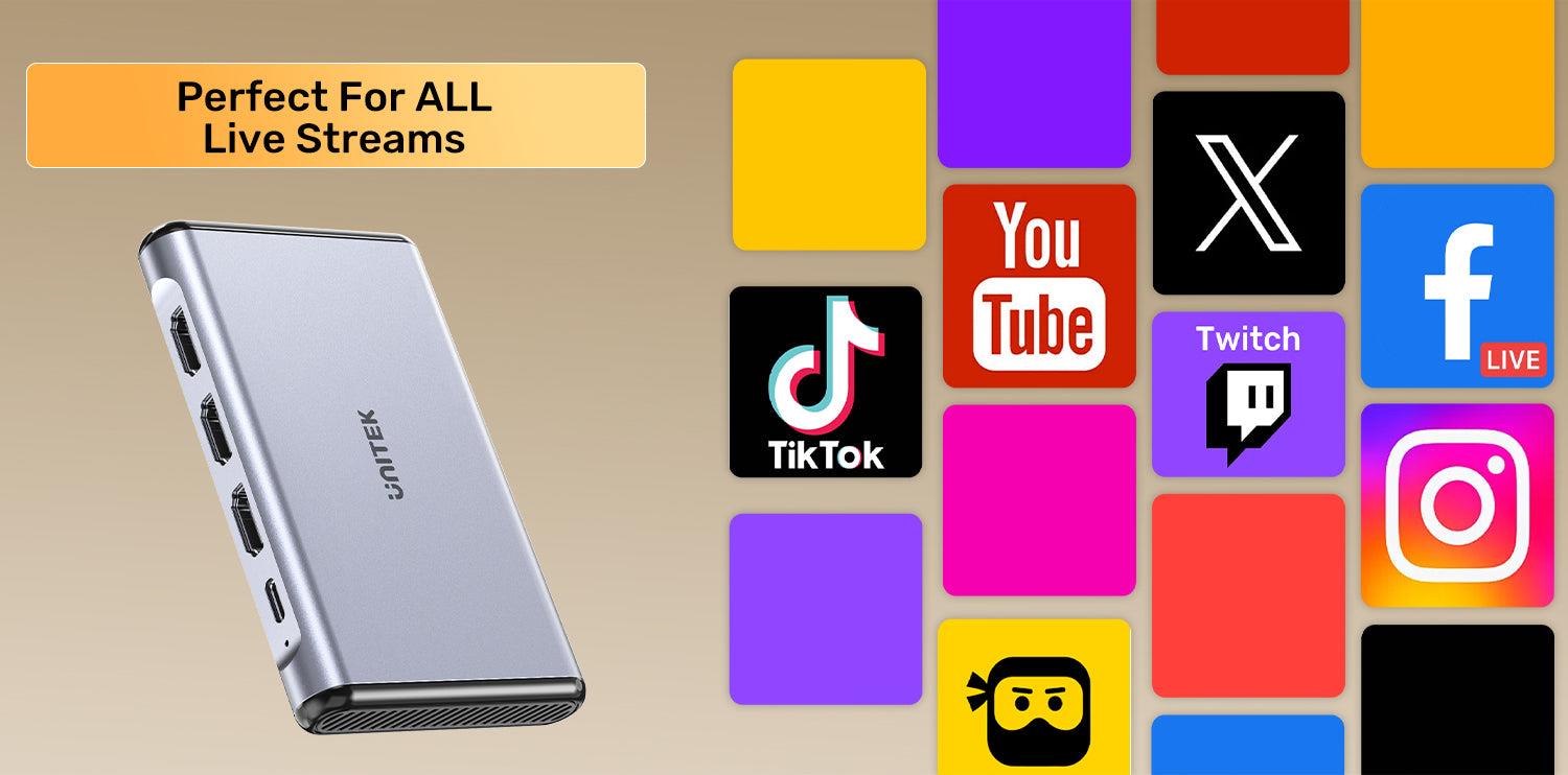 UNITEK Video capture card is a high-performance peripheral that supports high-definition input/ output up to 4K @ 60Hz. resolution. It is ideal for streamers who want to make interviews, presentations, live show or broadcast gameplay. Dual 4K HDMI Loop-out. Capture & Stream Instantly.