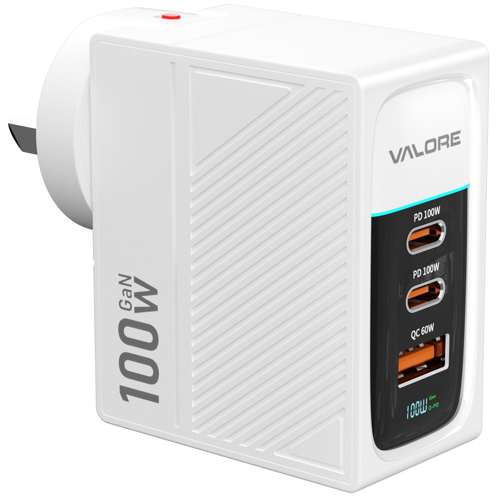 Product URL: https://www.pbtech.co.nz/product/ADPVLR10105/Valore-White-PD100W-Travel-GaN-Wall-Charger-with-D
