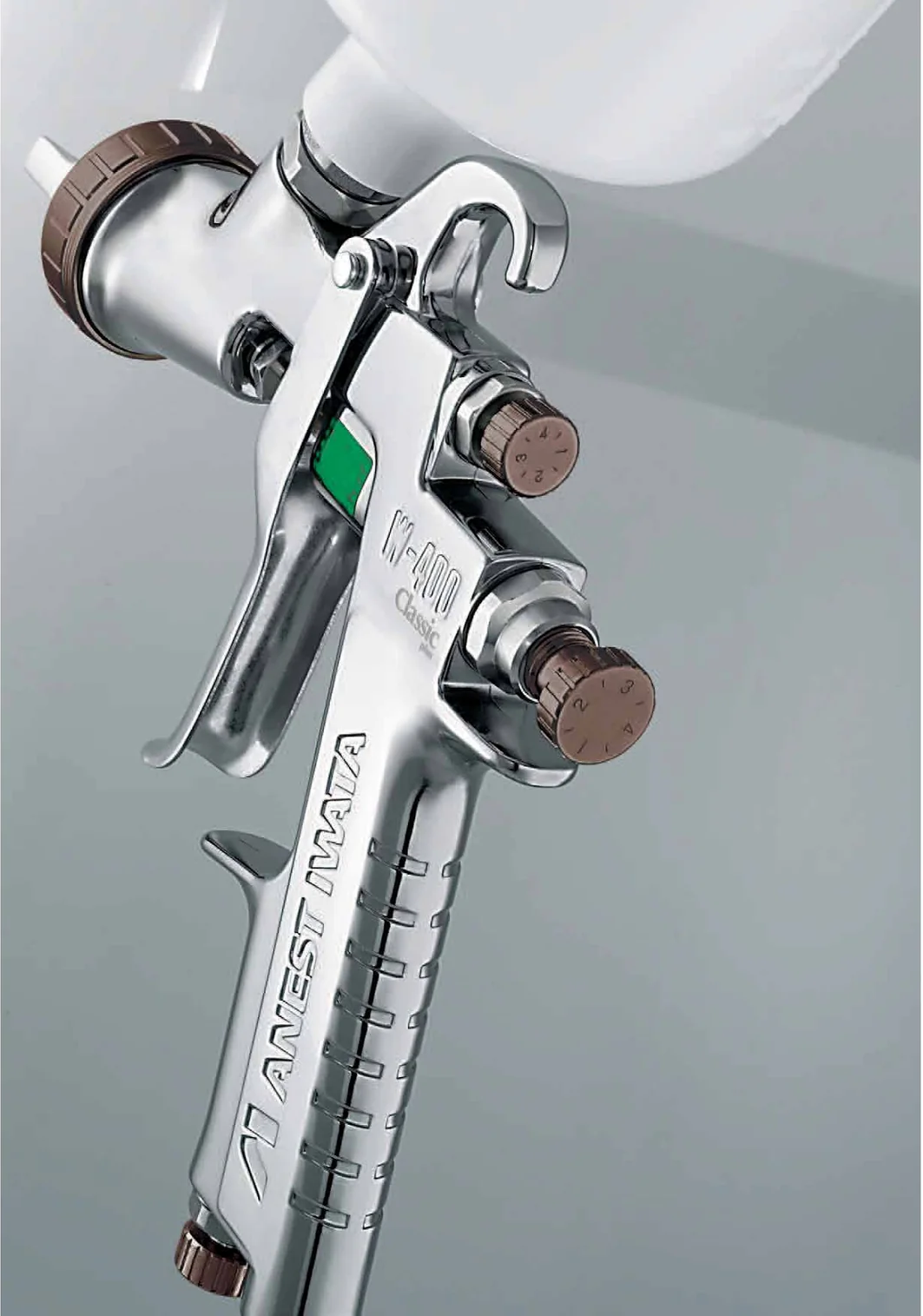 The IWATA W400 BELL ARIA Gravity Spraygun features the advanced Bellaria air cap, enhancing flat nozzle technology with a longer and flatter fan pattern. This design provides more uniform coverage and stable spray performance. The spraygun is ideal for professionals seeking consistency in all types of applications.