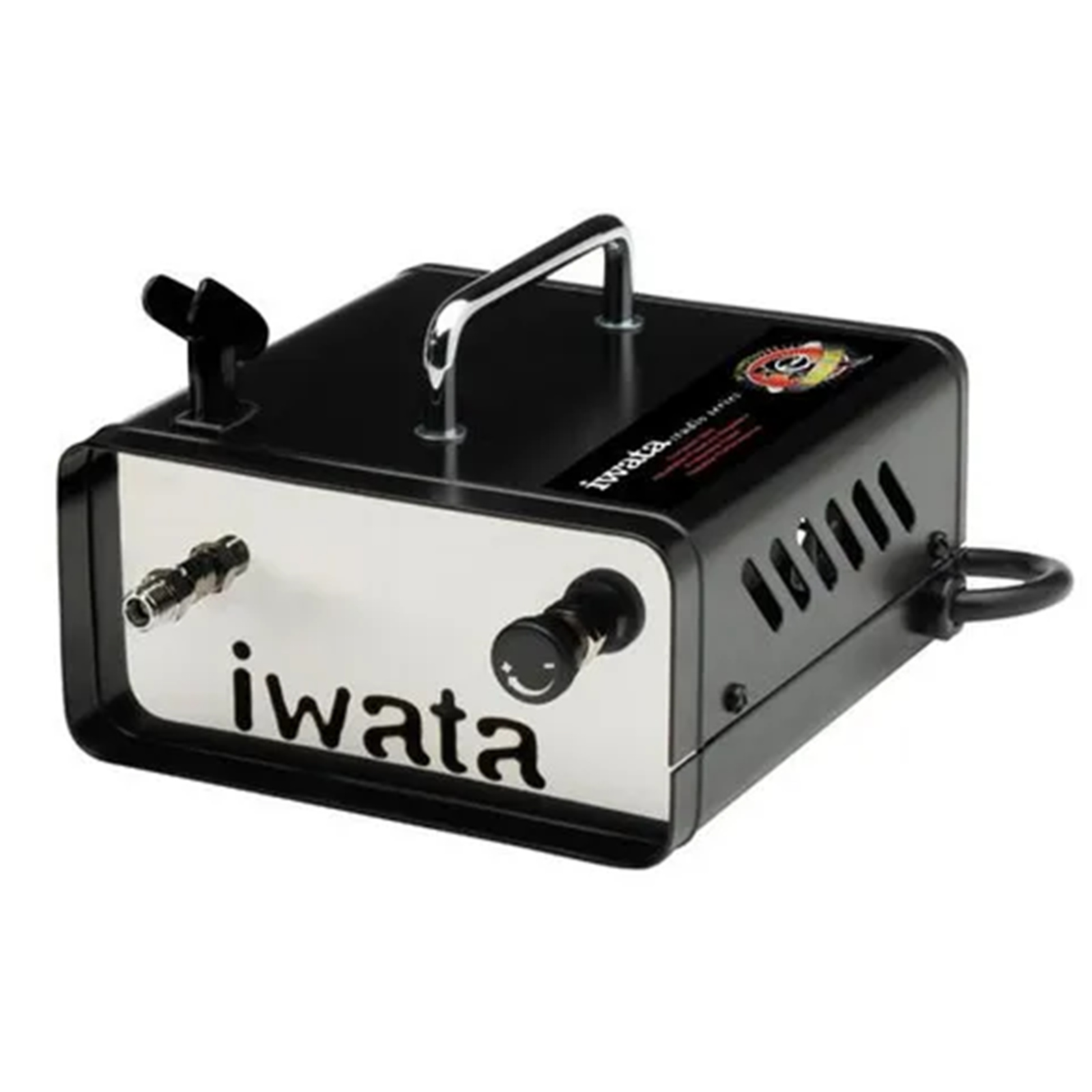 Compact in size, the Ninja Jet includes a built-in airbrush holder and a carrying handle that's ready to go anywhere. The low-maintenance oil-less piston motor and adjustable pressure regulator deliver reliable performance. A metal cover provides protection while the compressor runs continuously. Comes with High-strength 3Metre (10Ft) polyurethane recoil hose to fit Iwata airbrushes.