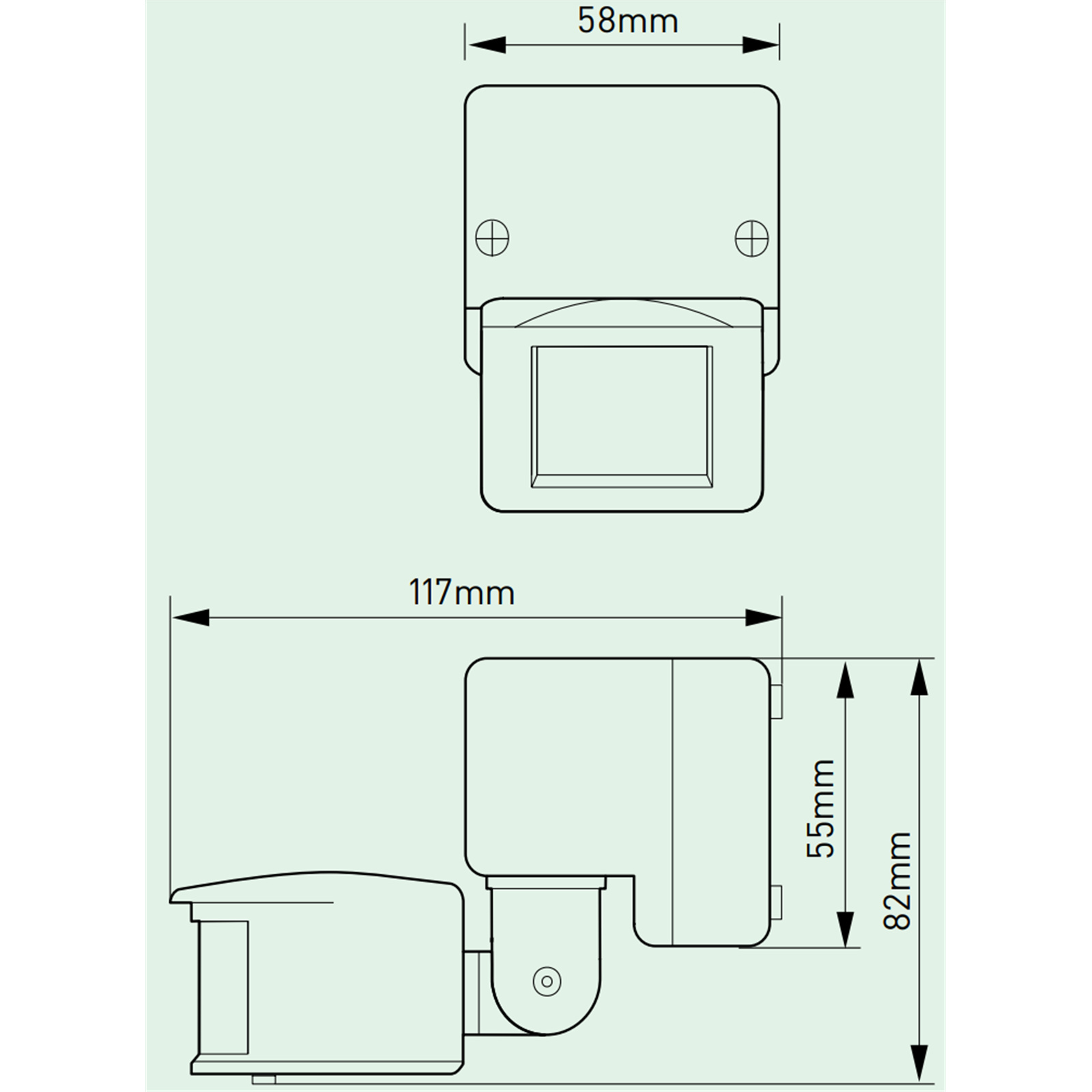 HOUSEWATCH 55-320 Surface Mount Outdoor Infrared Motion Sensor, IP44 White, 12C DV/AC,Manual override, Adustable time, distance and Lux, Wall/Ceiling mount, Environmental protection.