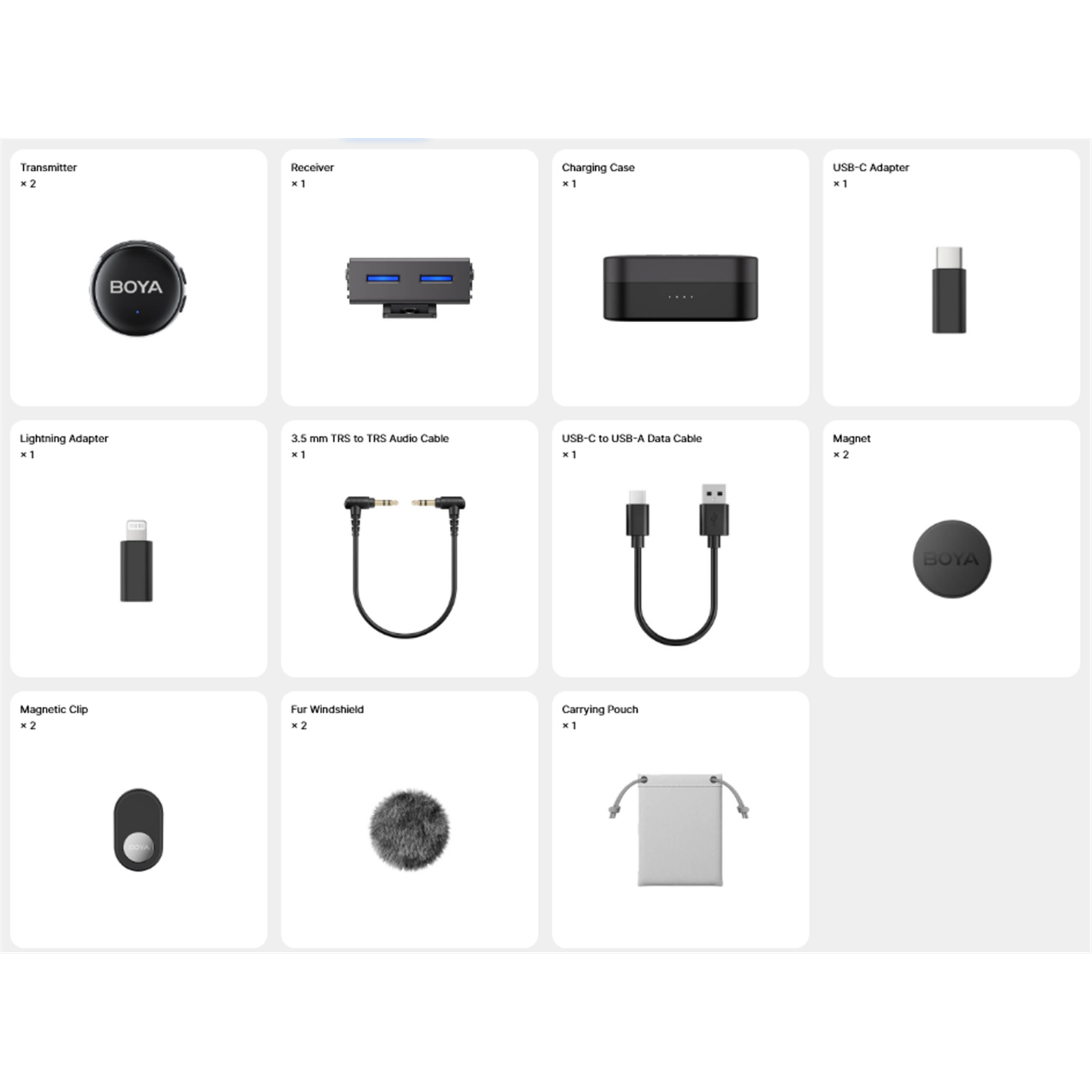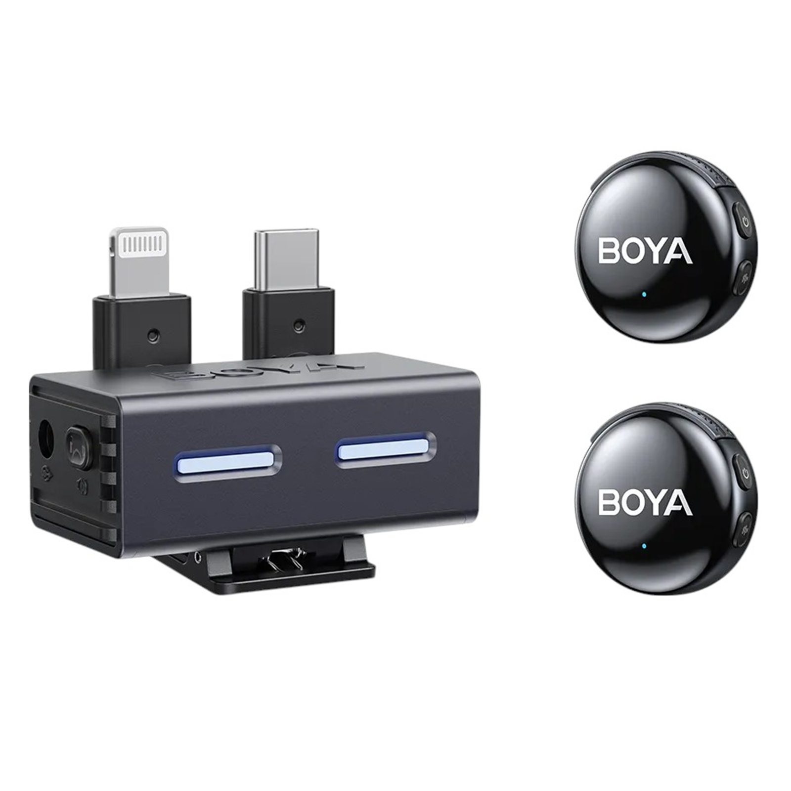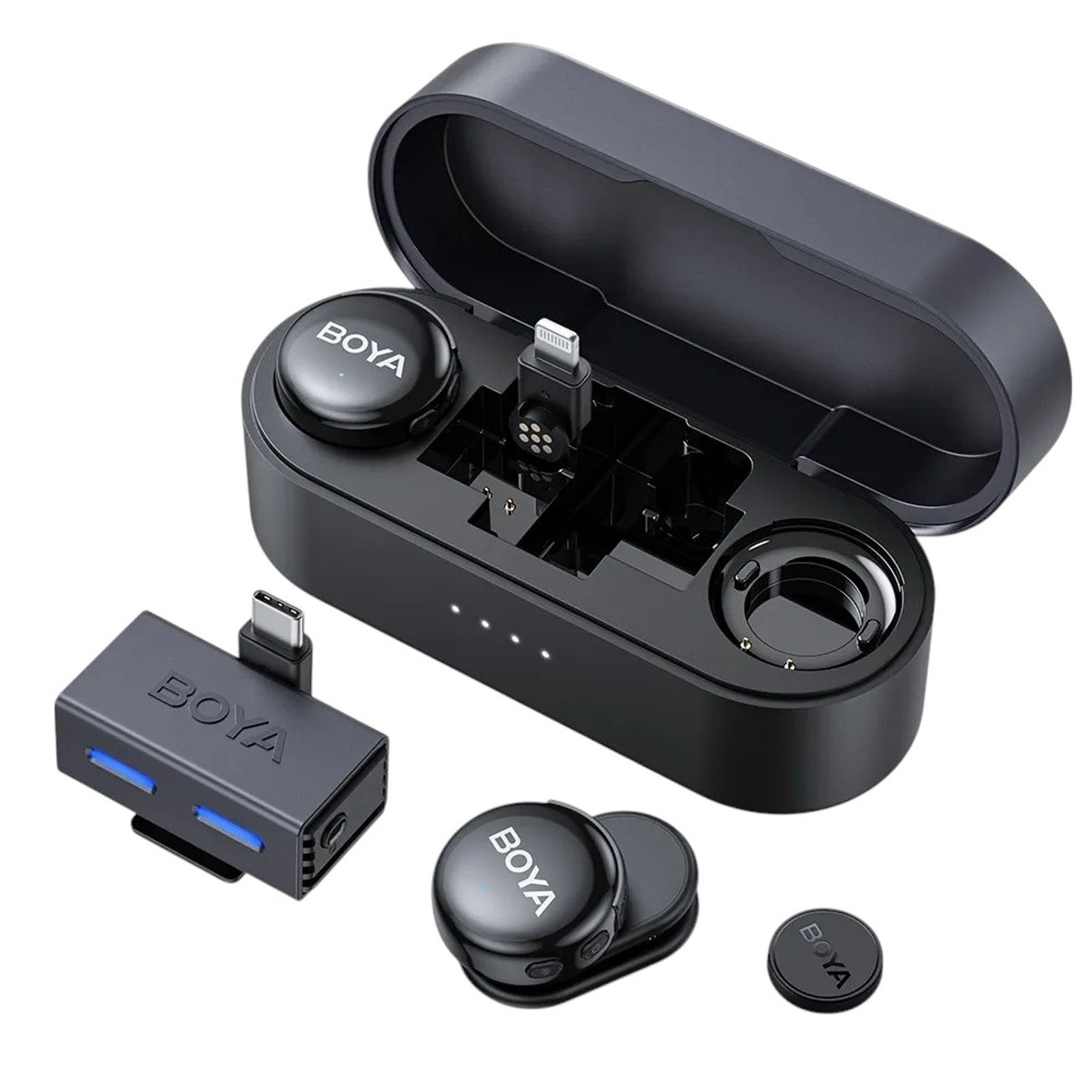 Boya BOYALINK 3 Wireless Lavalier Microphone - Black (USB-C + Lightning + 3.5mm TRS) - *RX + 2*TX+ Charging Case - for iPhone / Android / Camera Vlogging - All-in-One Lapel Dual Mic System & Lightning & USB-C & 3.5mm TRS Inputs