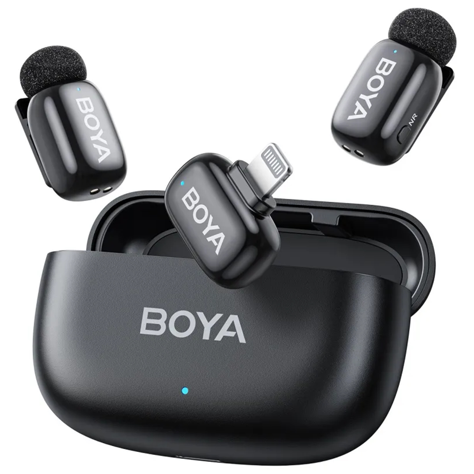Boya mini-Black Lightning Ultracompact 2.4GHz Wireless Microphone System ( Lightning ) RX + 2 TX + Charging Case