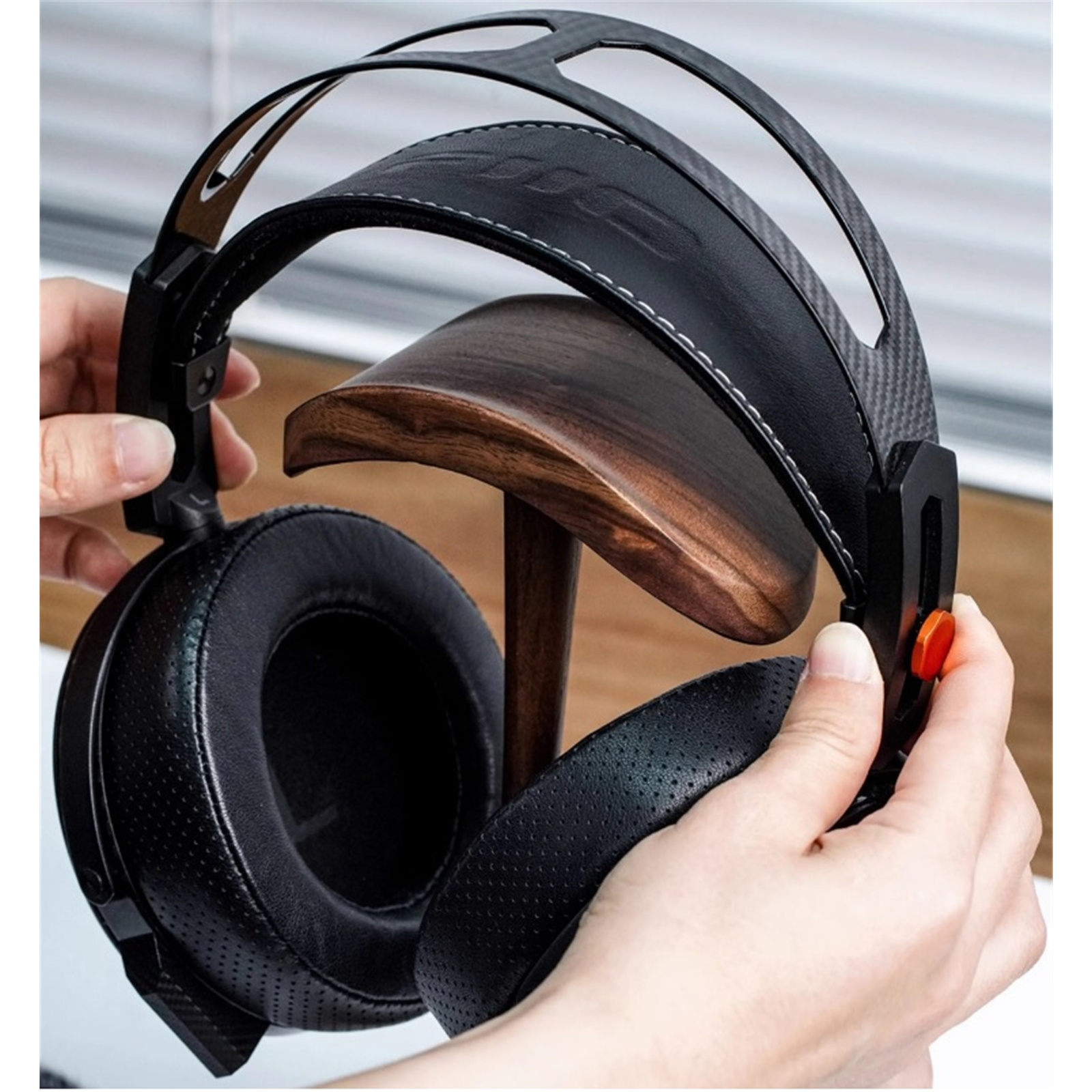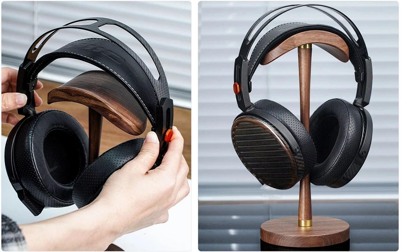FiiO HS21 Premium Wooden Headphone Stand - Black Walnut - Precision-crafted from solid North American black walnut - Arched support surface + anti-slip pads - Widely compatible with headphones & gaming headsets