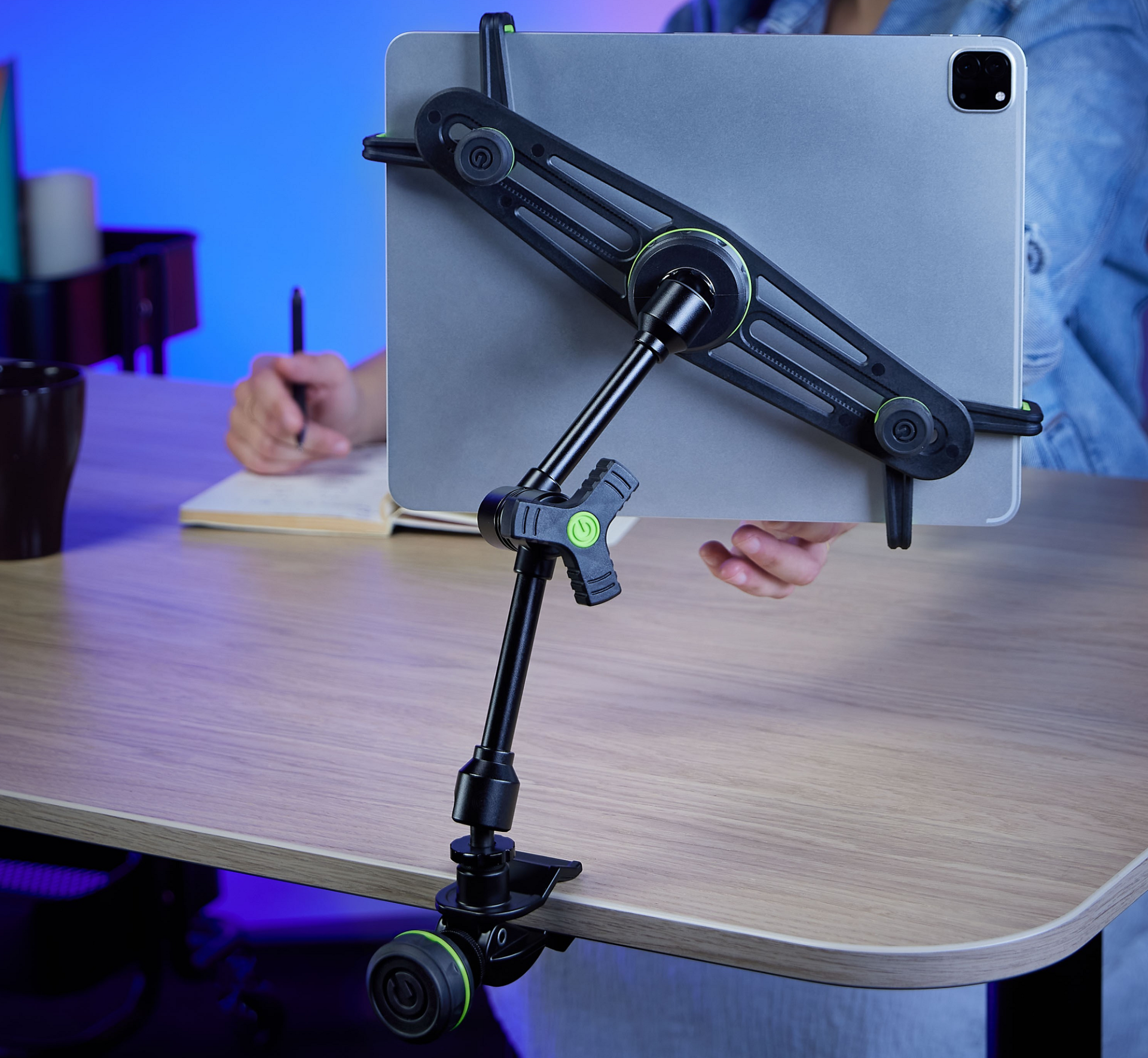 The Gravity Tablet Holder with VARI®-ARM is designed to give your tablet the perfect position-whether you're in the studio, on stage, or relaxing at home. Tablets have become essential tools for musicians, DJs, podcasters, producers, and presenters, but positioning them securely and conveniently has often been a challenge. This innovative holder solves that problem with smart design and professional-grade construction.