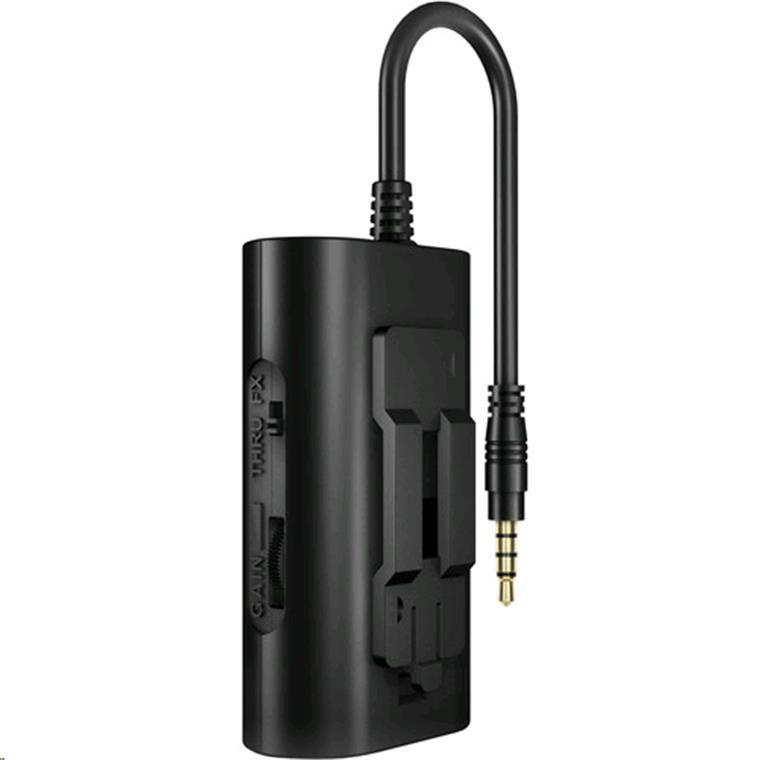 Effortlessly combine an entire rig of 3 simultaneous stompboxes, amp head, speaker cabinet, and microphone in order to achieve that ideal tone for your guitar or bass. The compact interface features a 1/4" instrument input to your portable i-series device, and a dedicated 1/4" amplifier output with an 1/8" line output for headphone monitoring or connecting to a PA system. There is a selectable dual-mode switch for FX and THRU, which allows you to process your instrument or pass the signal through unaltered. A dedicated gain control thumbwheel allows you to dial in the optimum setting.