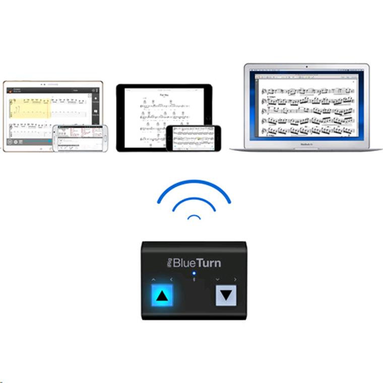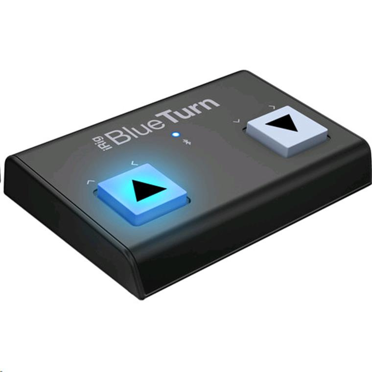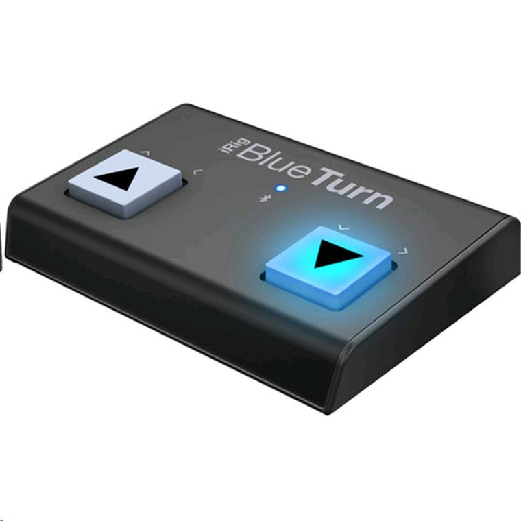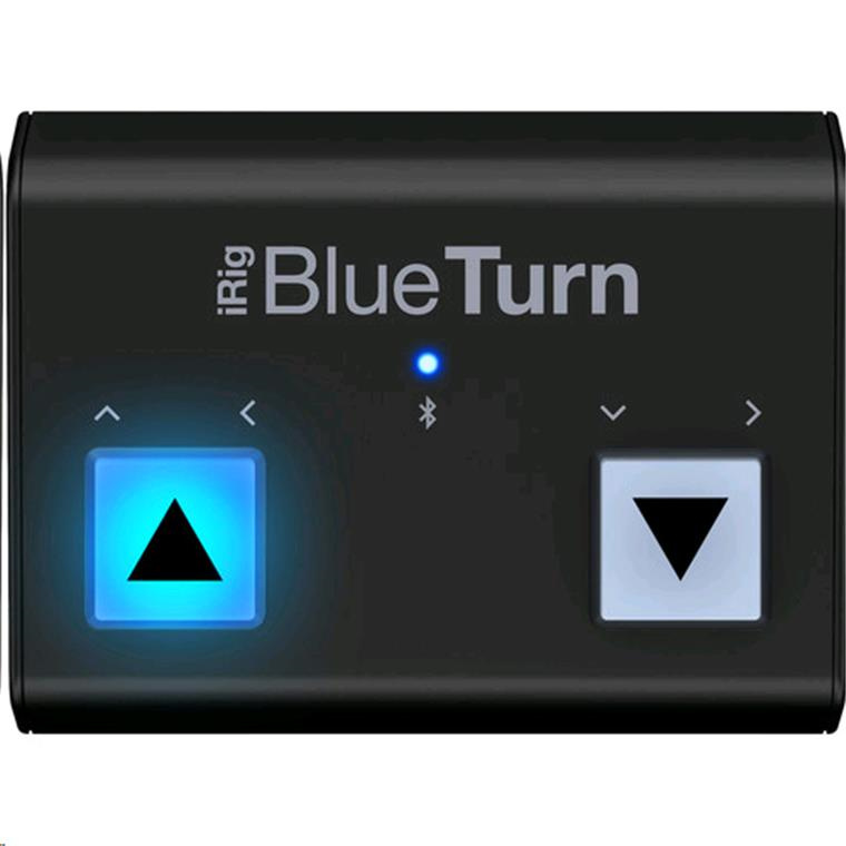 Now, using an iPhone, iPad, Mac or Android on stage for set lists and sheet music just got a lot easier! iRig BlueTurn is a Bluetooth page turner with silent backlit pad buttons that easily lets you turn pages and scroll through material hands-free. If you'd like to streamline the page turning process for your sheet music, lyrics, slides, tabs and other documents, iRig BlueTurn is the answer.