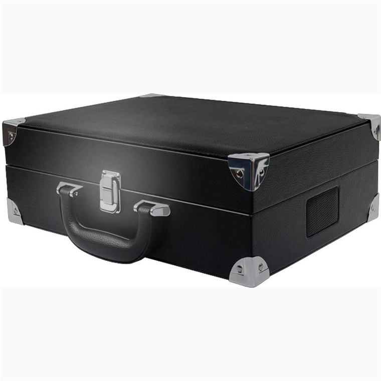 The hand-made suitcase with stitching line, PU leather package reflects the elegant workmanship. The inner lid equipped with red matte fabric clothes, trunk switch, enabling storage and minimizes dust. Whether at home or as a gift, it reflects the beautiful history and taste of vinyl recorded music.