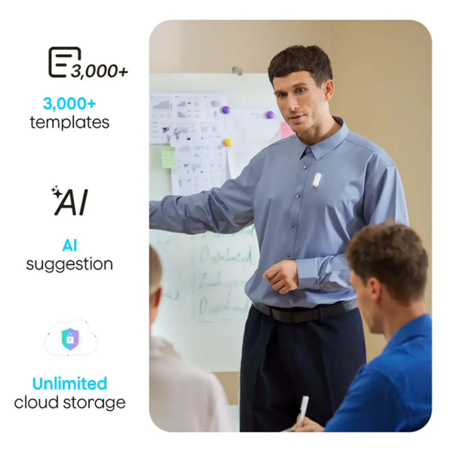Plaud NotePin weighs only 0.59 oz. You can easily wear anyway you want and take notes for you anywhere, anytime.