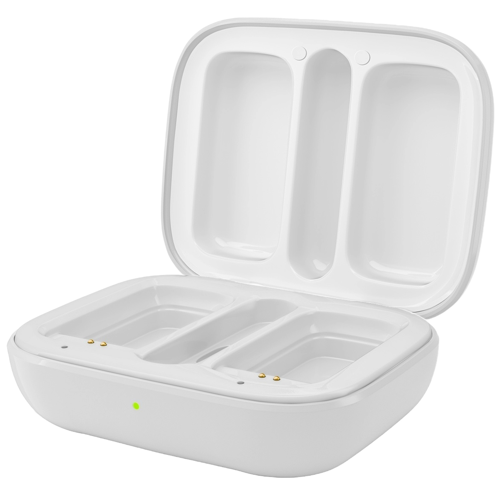 TX: In-built rechargeable lithium-ion battery, charged via Pogo-pin contacts to Charging Case (5V, 0.1A)