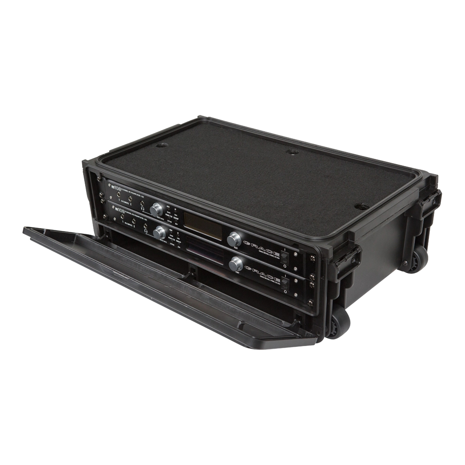 SKB SKB-ISF2U Injection Molded 2U Studio Flyer Rack Case with Wheels / Pull Handle