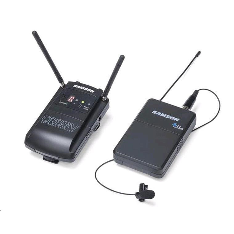 Audio reaches the CR88V Micro Wireless Receiver receiver via the CB88 Beltpack Transmitter, which includes Samson's LM10 Omnidirectional Lavalier Microphone. Offering eight hours of battery life using two AA batteries (not included), the CB88 transmitter features a variable Gain control, popless 1-touch Mute button and metal belt clip.
