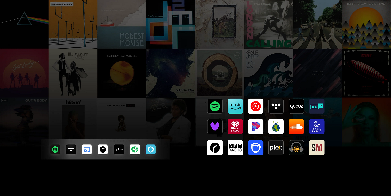Stream from over 20 services directly in the WiiM Home App-including Spotify, Amazon Music, YouTube Music, Music, TIDAL, Qobuz, Deezer, Napster, Pandora, Plex, SoundCloud, TuneIn, iHeartRadio, and more.