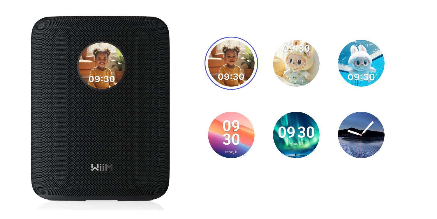 WiiM Sound WiFi Multiroom Smart Speaker - White - Hi-Res 24bit/192kHz - 100W Peak - AI RoomFit Room Correction - 1.8" Round Touchscreen - WiFi 6E/Ethernet/Bluetooth - 4" Woofer + Dual Tweeters - Voice Remote 2 included