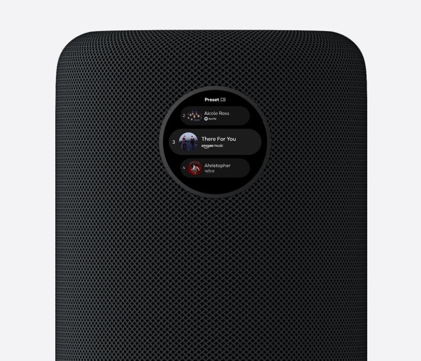 - Hi-Res 24bit/192kHz - 100W Peak - AI RoomFit Room Correction - 1.8" Round Touchscreen - WiFi 6E/Ethernet/Bluetooth - 4" Woofer + Dual Tweeters - Voice Remote 2 included