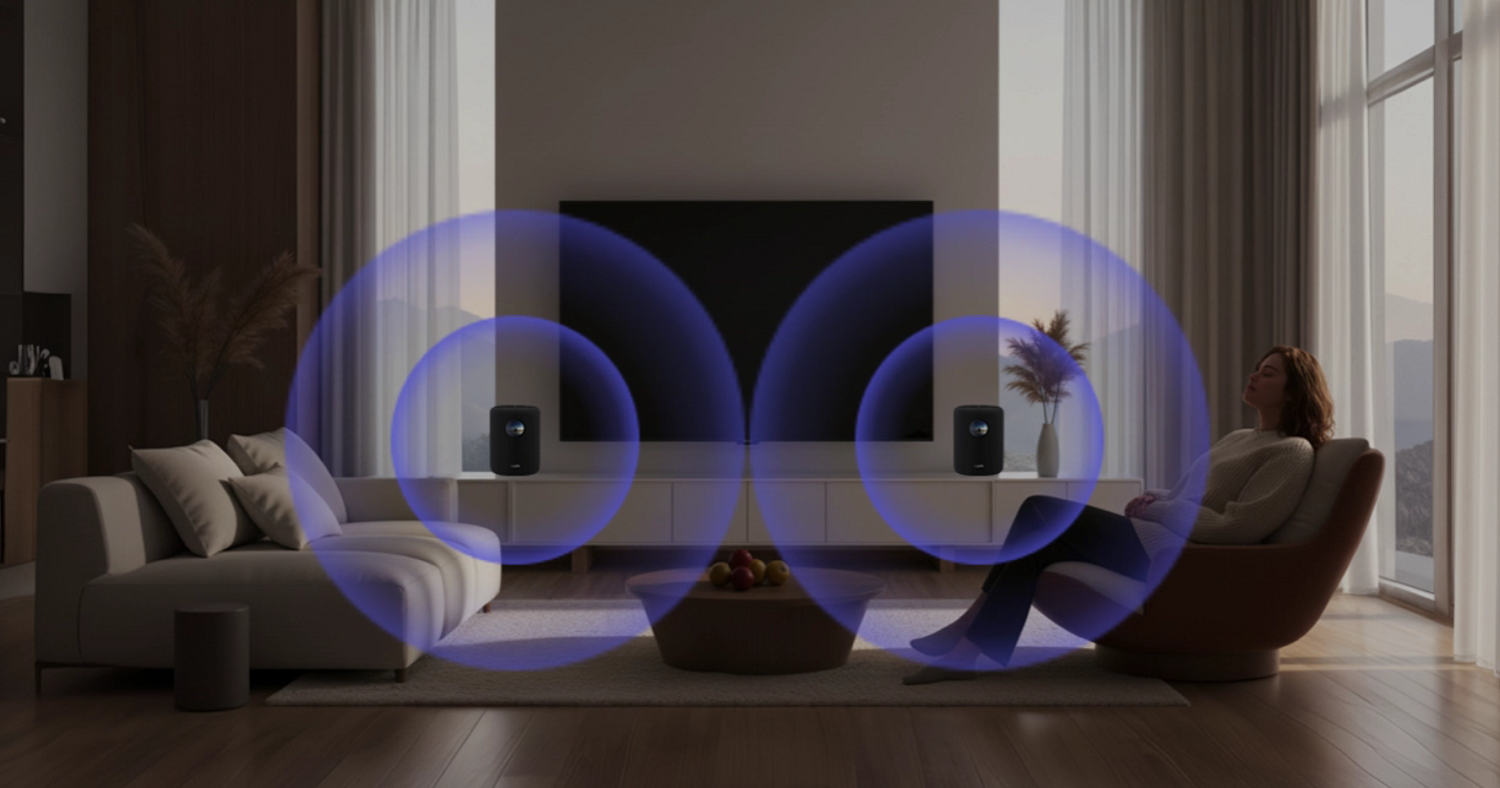 Adapts to where you actually sit and re‑tunes in seconds after you move or rearrange, preserving the speaker's intended tonality while keeping music clear anywhere in the room.