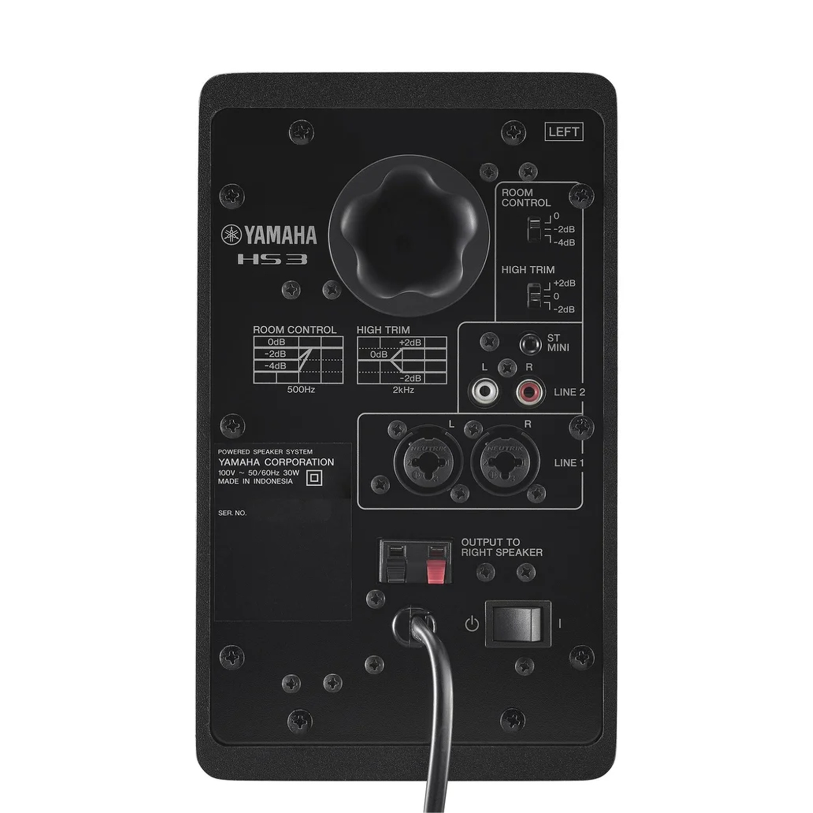 The rear panels of the HS3 and HS4 are equipped with ROOM CONTROL and HIGH TRIM functions that allow you to make adjustments to achieve the ideal sound for any environment, such as reducing the unneeded, exaggerated low-end that can often occur when speakers are placed next to walls.