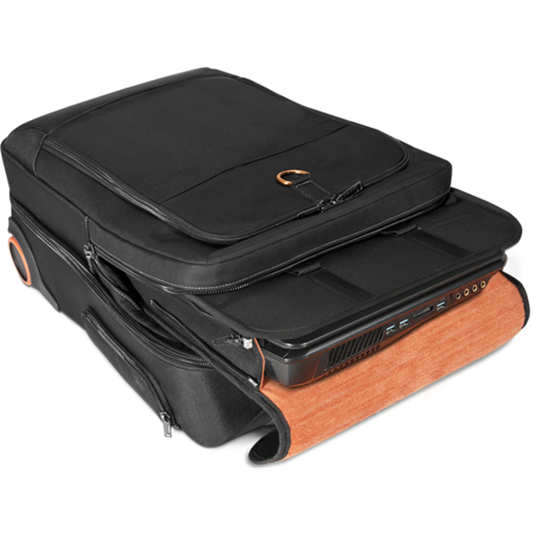 If you're looking for a rolling solution for an 18.4-inch laptop, you've found it in the Titan Laptop Trolley. Because a large laptop may be difficult to travel with - we've designed the Titan Trolley to fit the most beefy laptop, with the ease and agility of a trolley, and is sleek enough to carry on board. With places to put all your peripherals, and our signature orange interior, you'll be able to find them easily and quickly - even in a dimly lit cabin. Also, take other equipment along, like a small projector and an iPad Pro/tablet. Plus, with the Titan Trolley, the bag will pass through security quickly and easily with its removable laptop sleeve. Look no further. The Titan Laptop Trolley is all this and more.