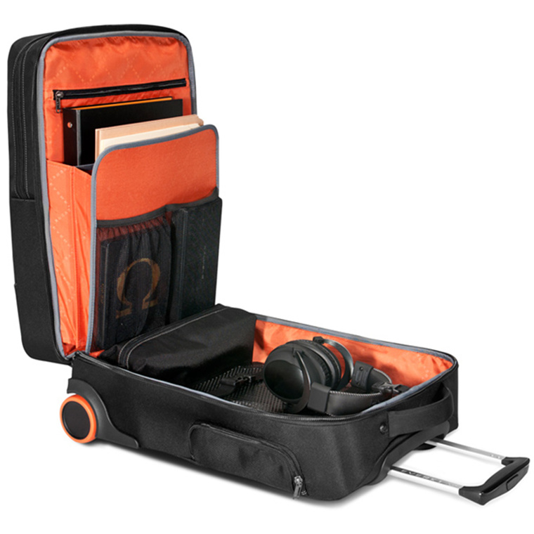 If you need room in your carry-on for multiple devices or equipment for a presentation, the Titan Laptop Trolley is just right. We constructed the spacious main compartment with hard-core technology users in mind, with a strap to hold headphones in place, and plenty of room for a projector and 3-ring binder. There's also a file organizer to keep documents and important papers from being folded, and in the front, a dedicated iPad Pro/tablet pocket with super-soft, high contrast orange felt to protect against scratches and nicks. Yeah, you can take that too.