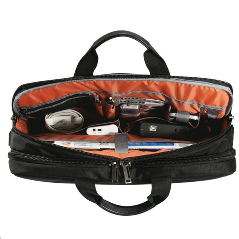 Checkpoint friendly design, Felt-lined iPad/tablet pocket, Well-organized compartments, Ergonomic shoulder pad