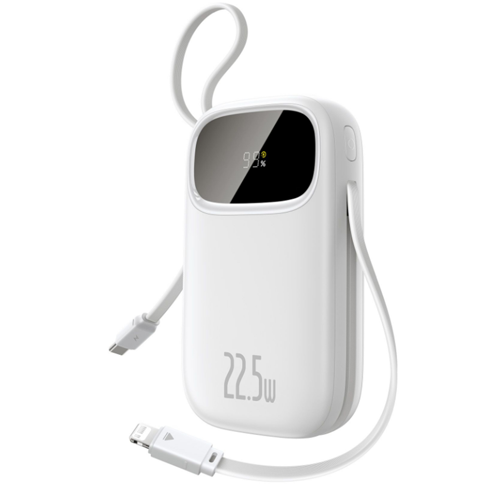 Baseus EnerFill FC31 10000mAh Digital Display Power Bank - Moon White with 2 Built-in Cables - 22.5W