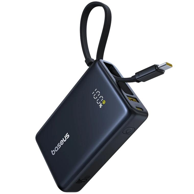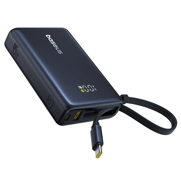 Baseus PicoGo 10000mAh 45W 2-Ports Digital Display Power Bank - Cosmic Black Input 30W / Output 45W / 1x USB-C Port , 1x USB-A Port / with Built-in Cables(USB-C)