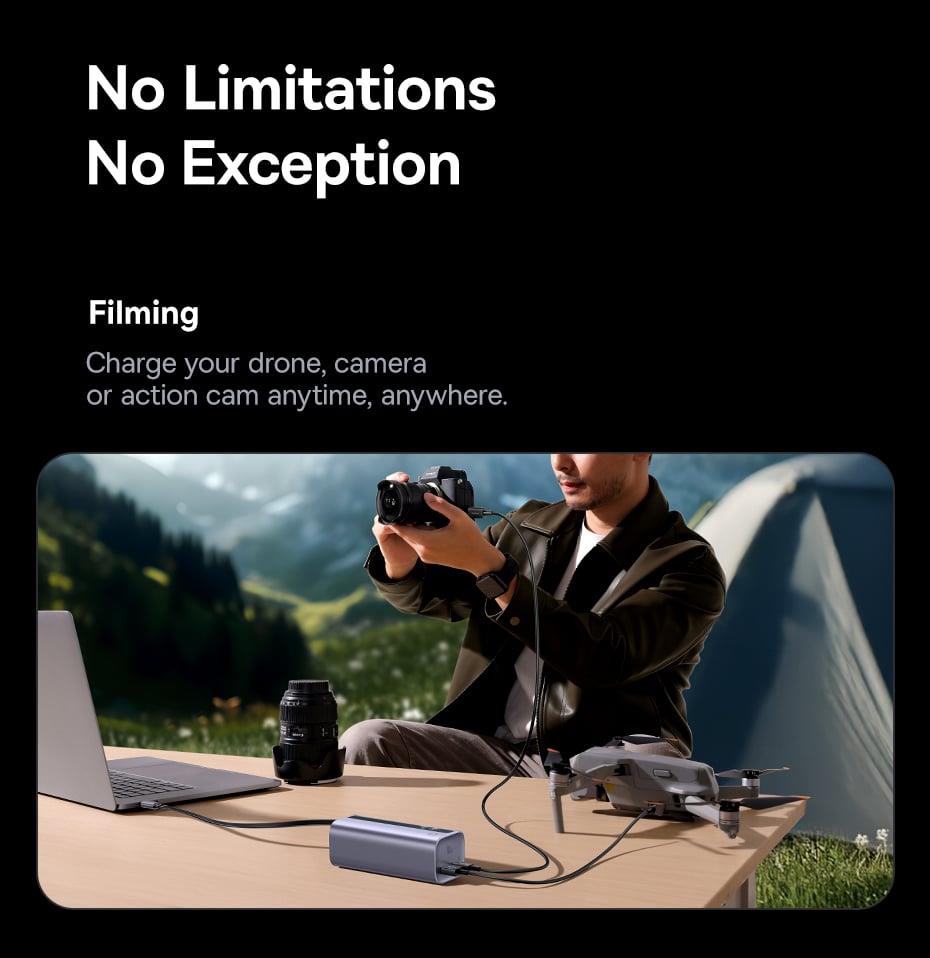 Delivers up to 100W output and 65W input for rapid charging of laptops, tablets, and smartphones.